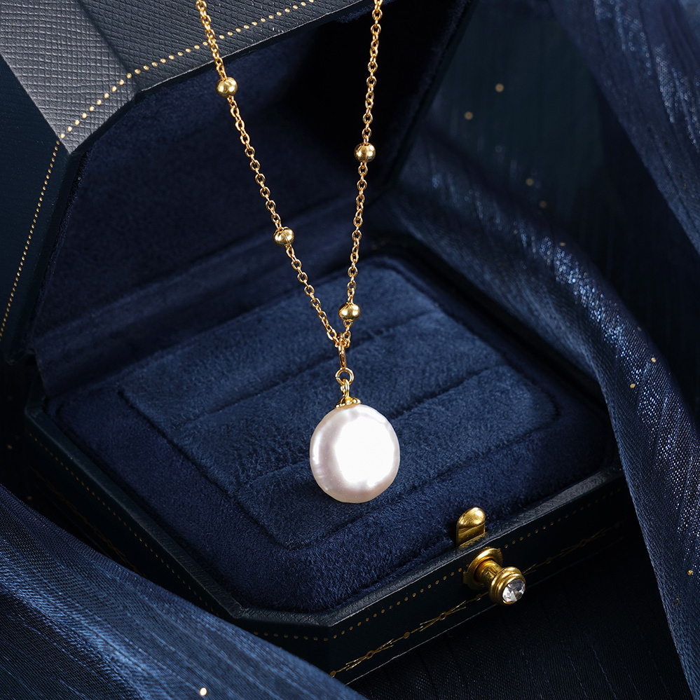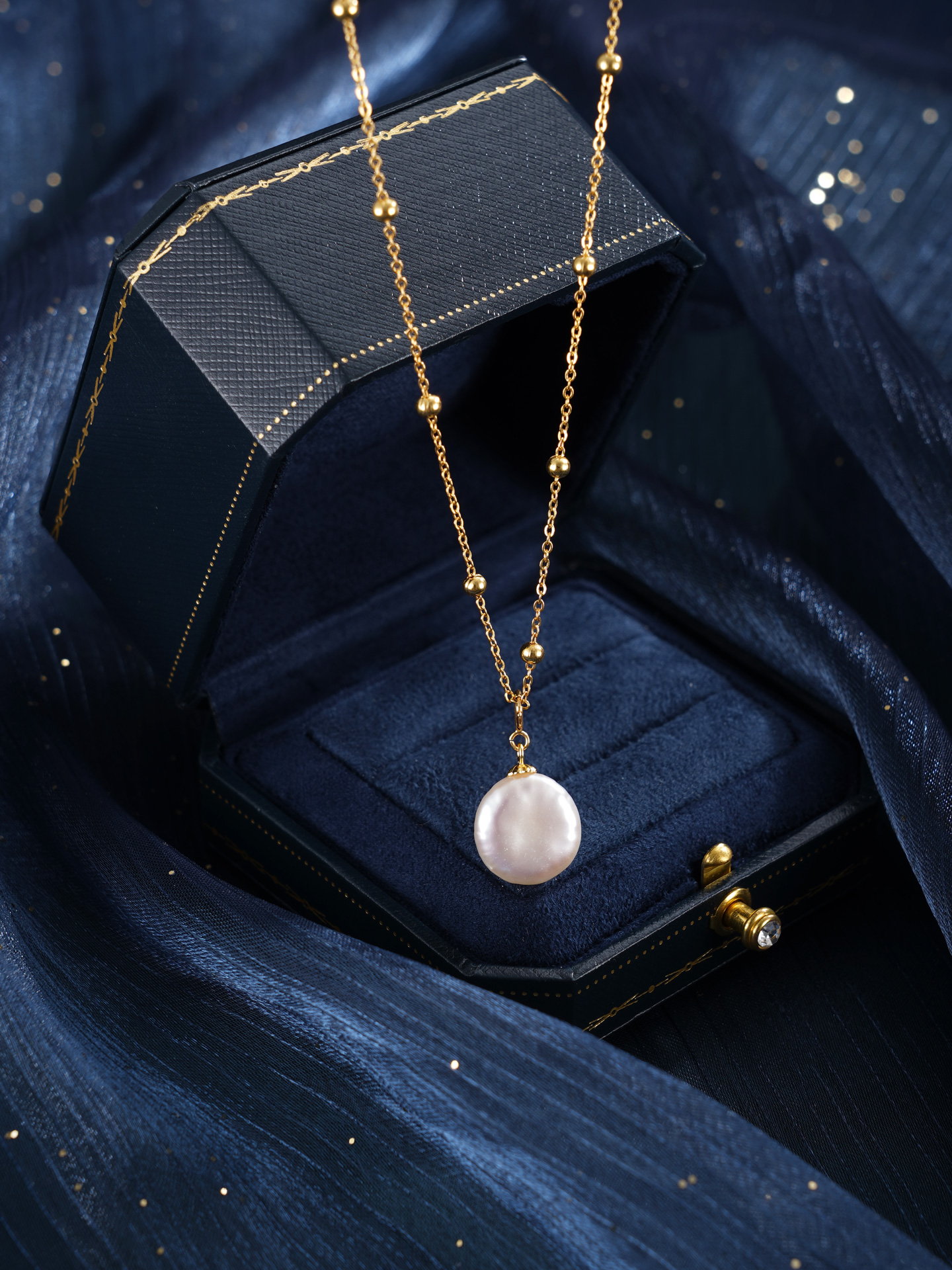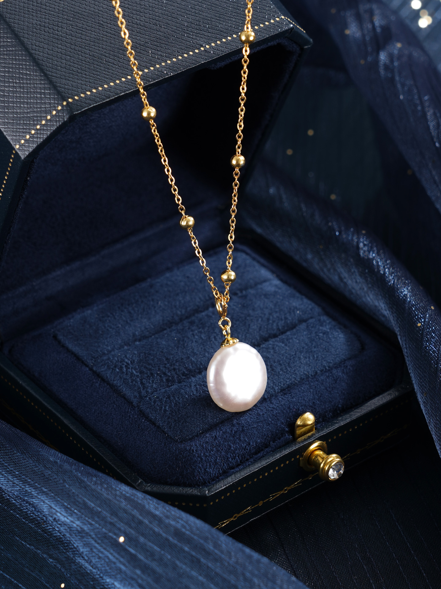 子佩集【月华珠露】银S925珍珠惜王妃项链【SGN0610002】13mm珠镀金巴洛克扁珠2601