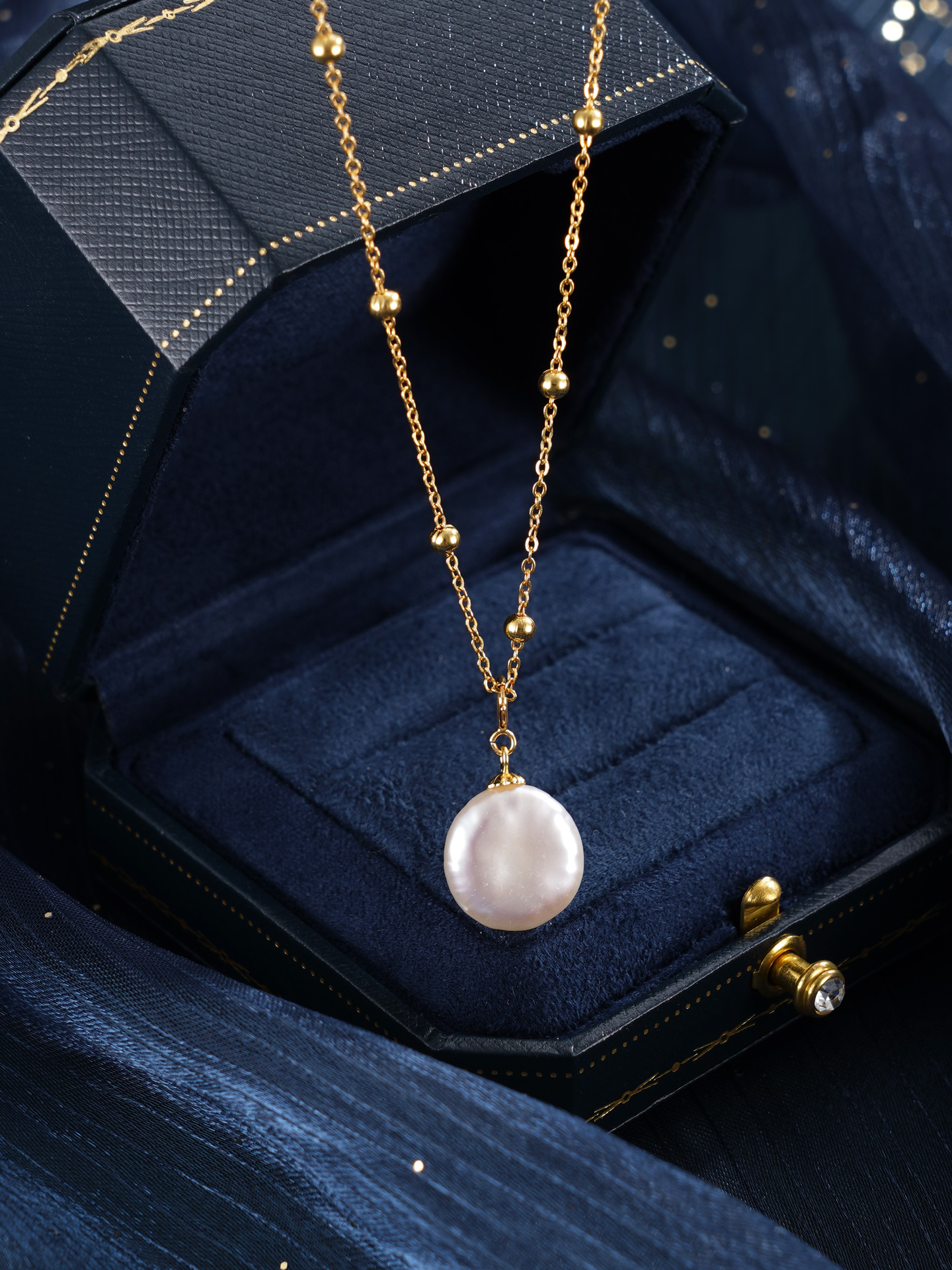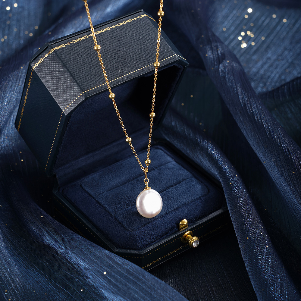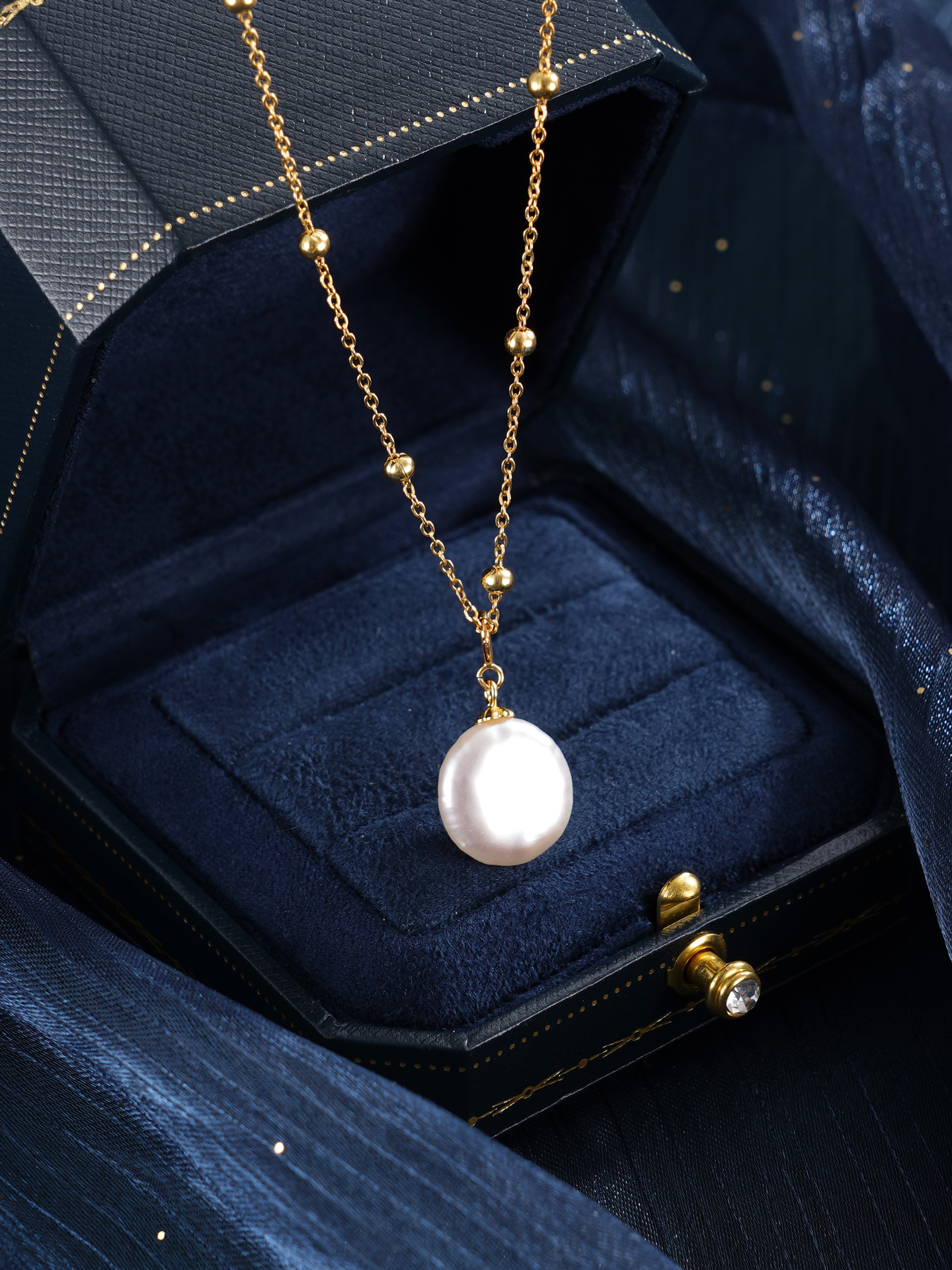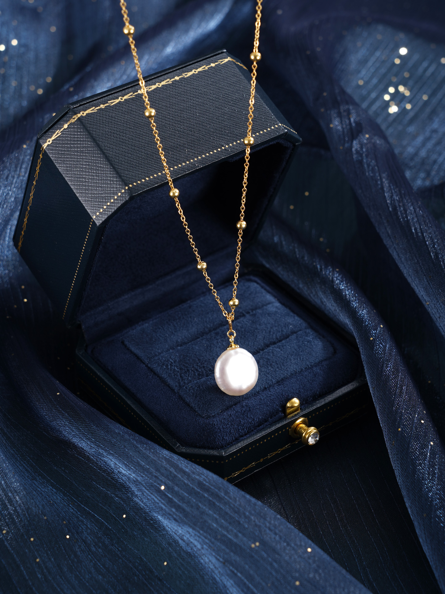 子佩集【月华珠露】银S925珍珠惜王妃项链【SGN0610002】13mm珠镀金巴洛克扁珠2601