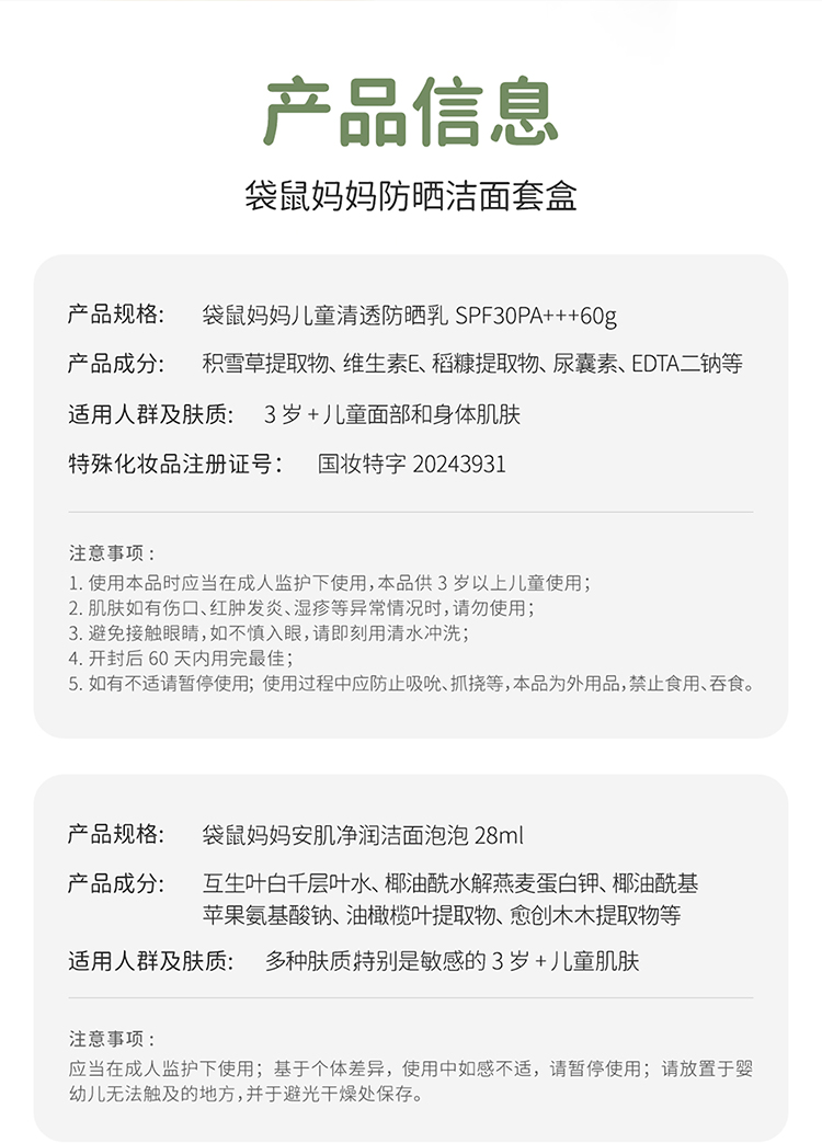 【防晒洁面2件套】特证防晒 纯物理配方 洁面 净油防痘洗卸2合1 袋鼠妈妈防晒洁面2件套