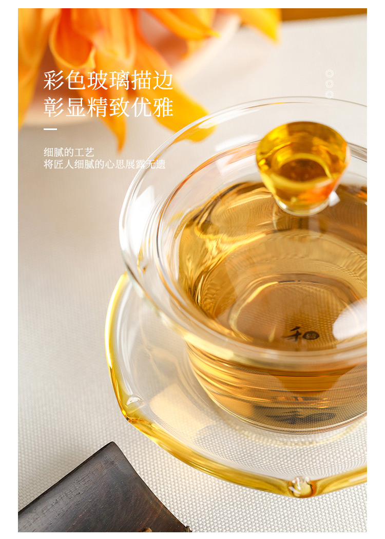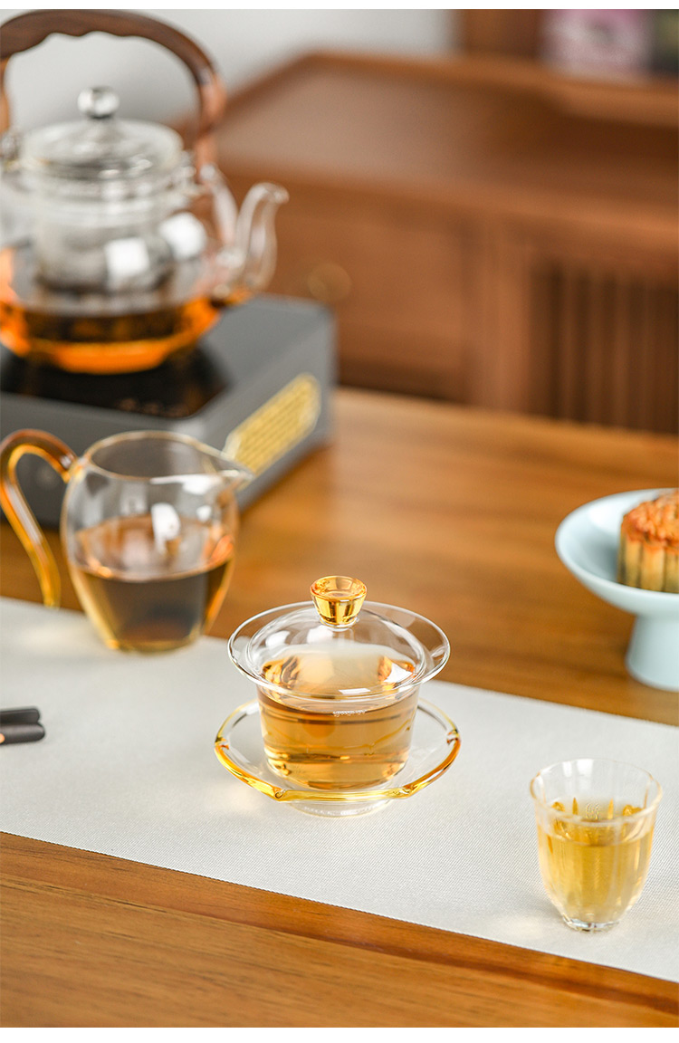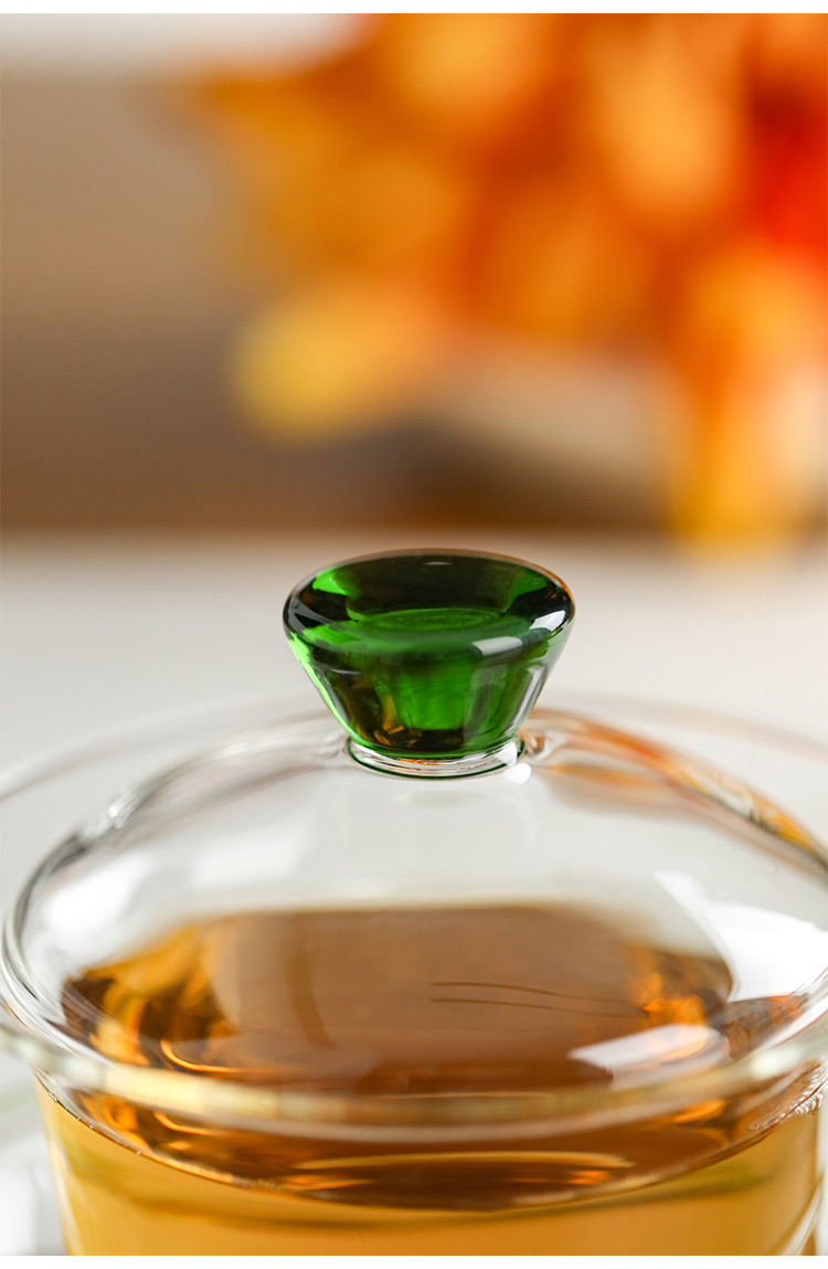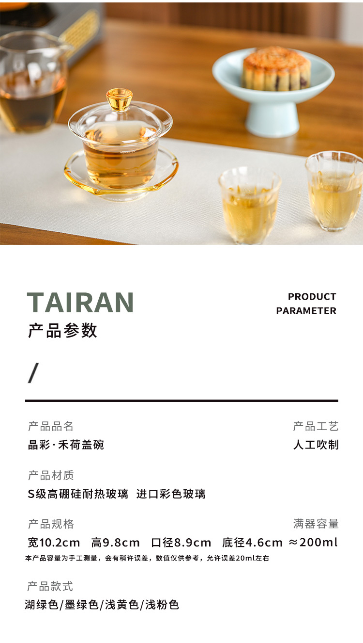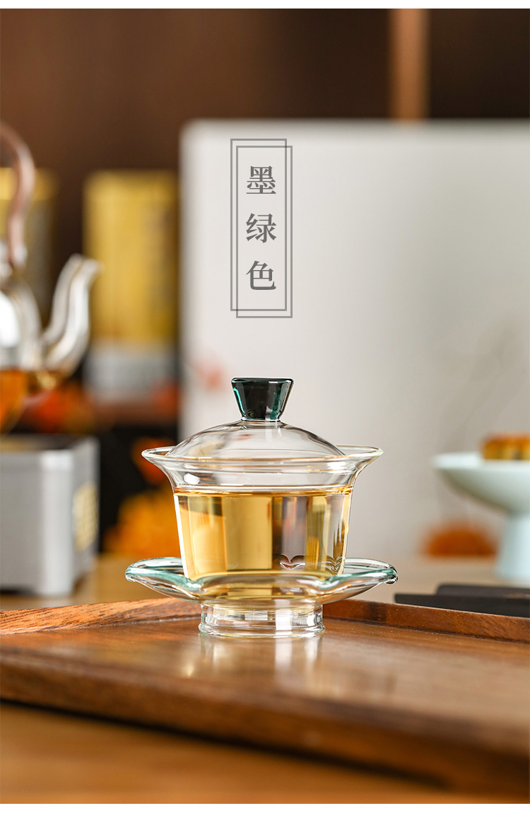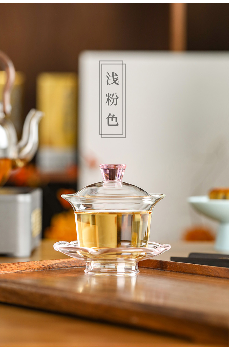 禾器晶彩·禾荷盖碗 玻璃盖碗耐高温玻璃茶碗功夫茶碗三才盖碗盖碗茶
