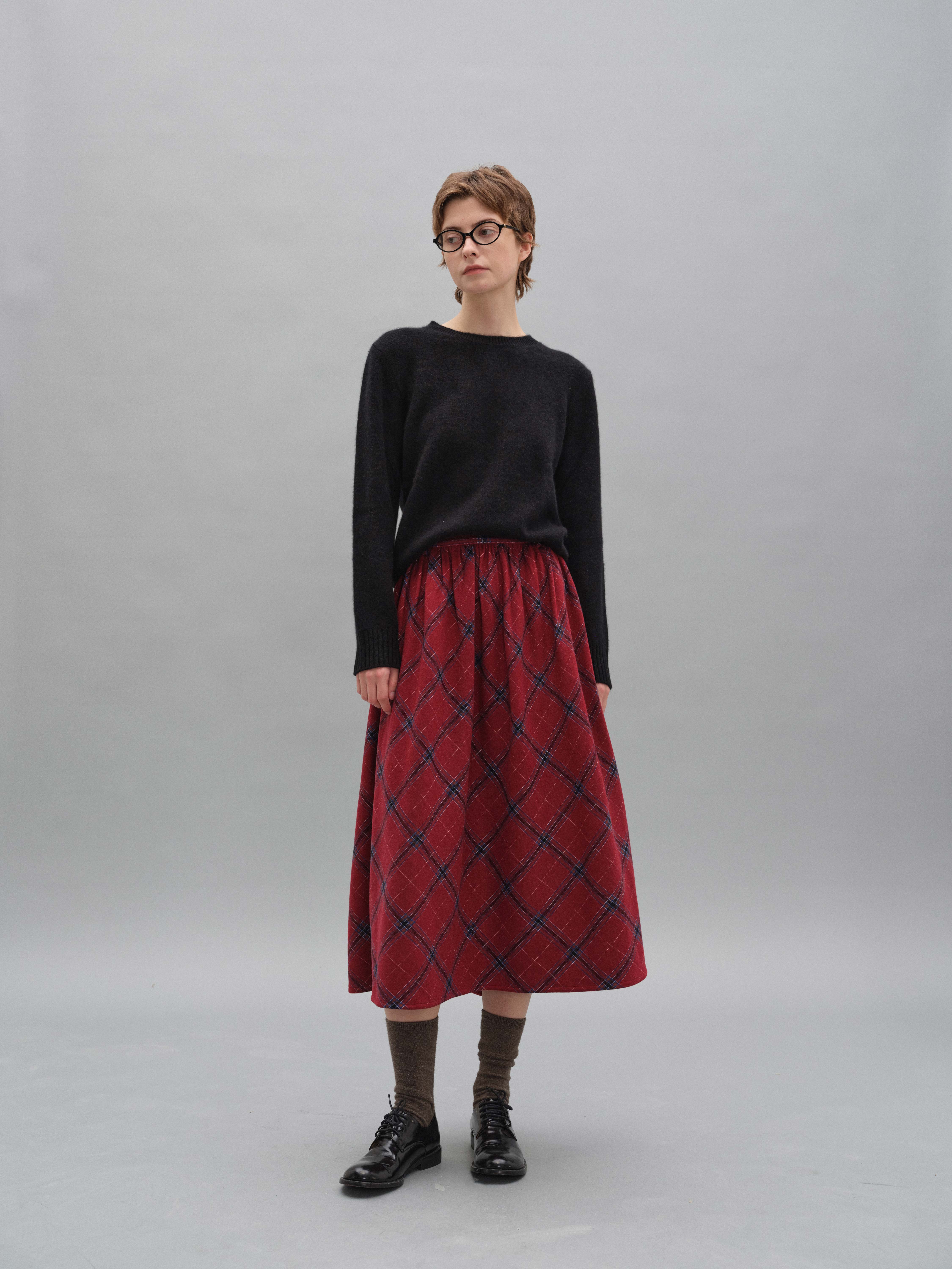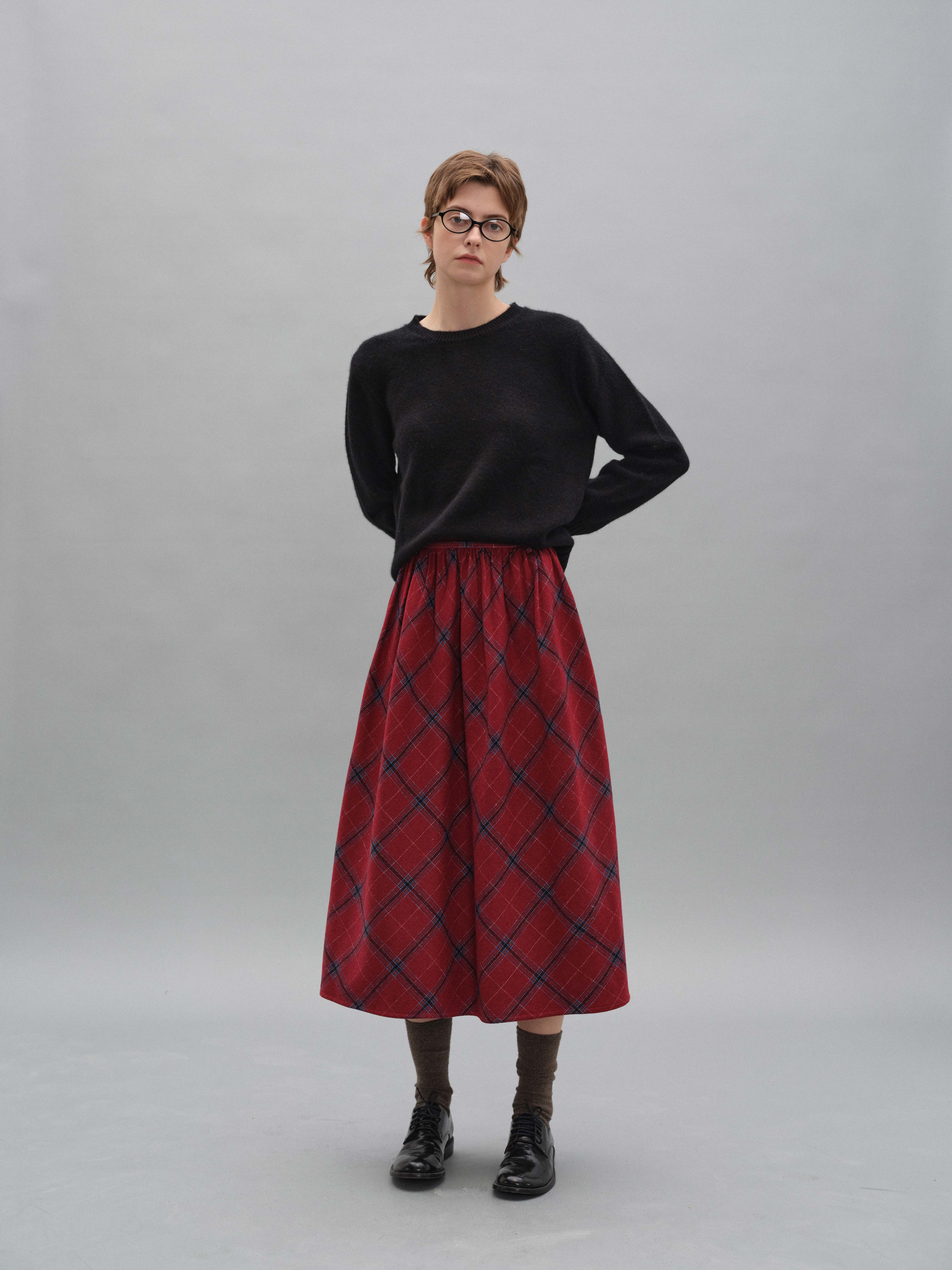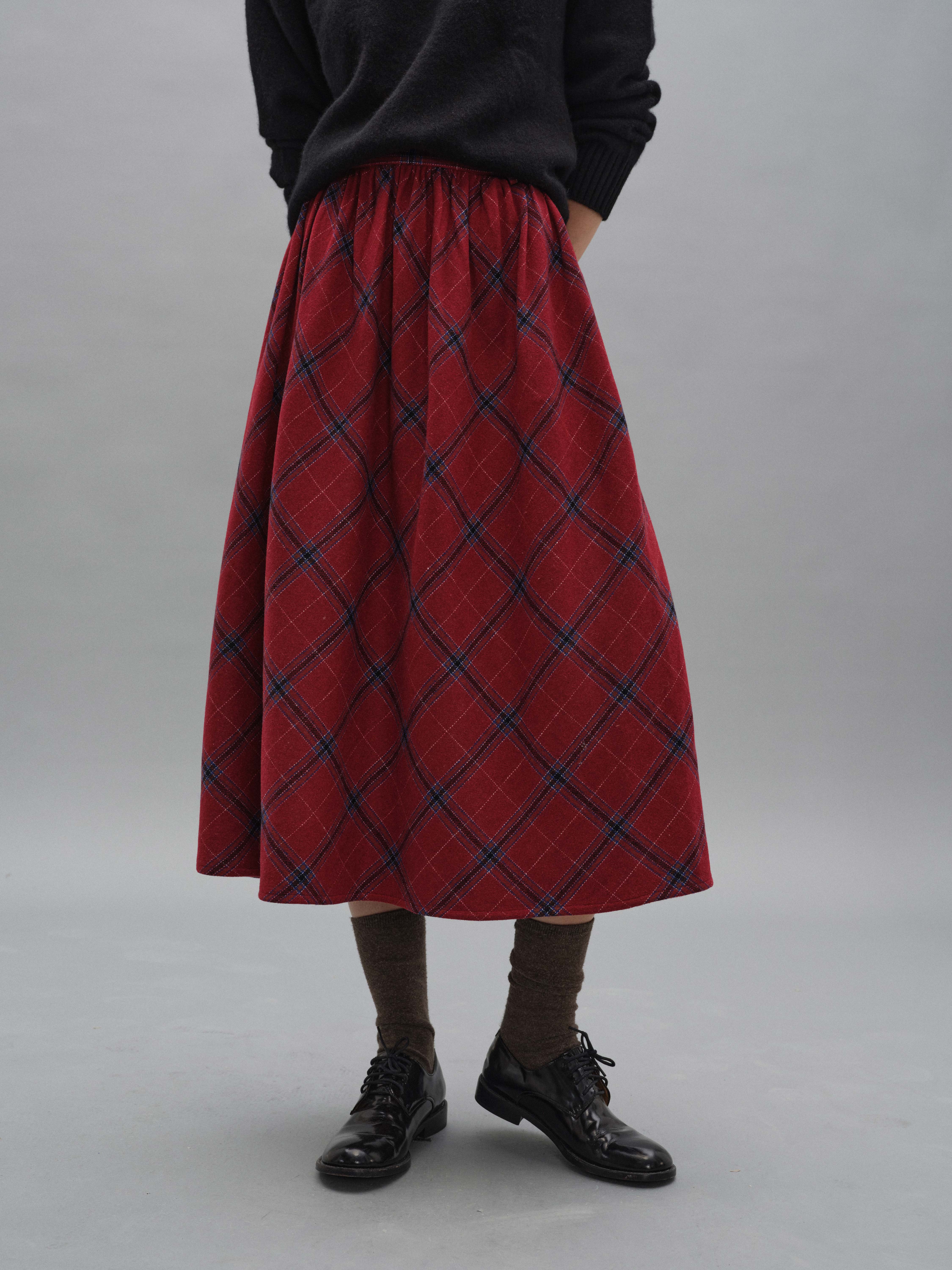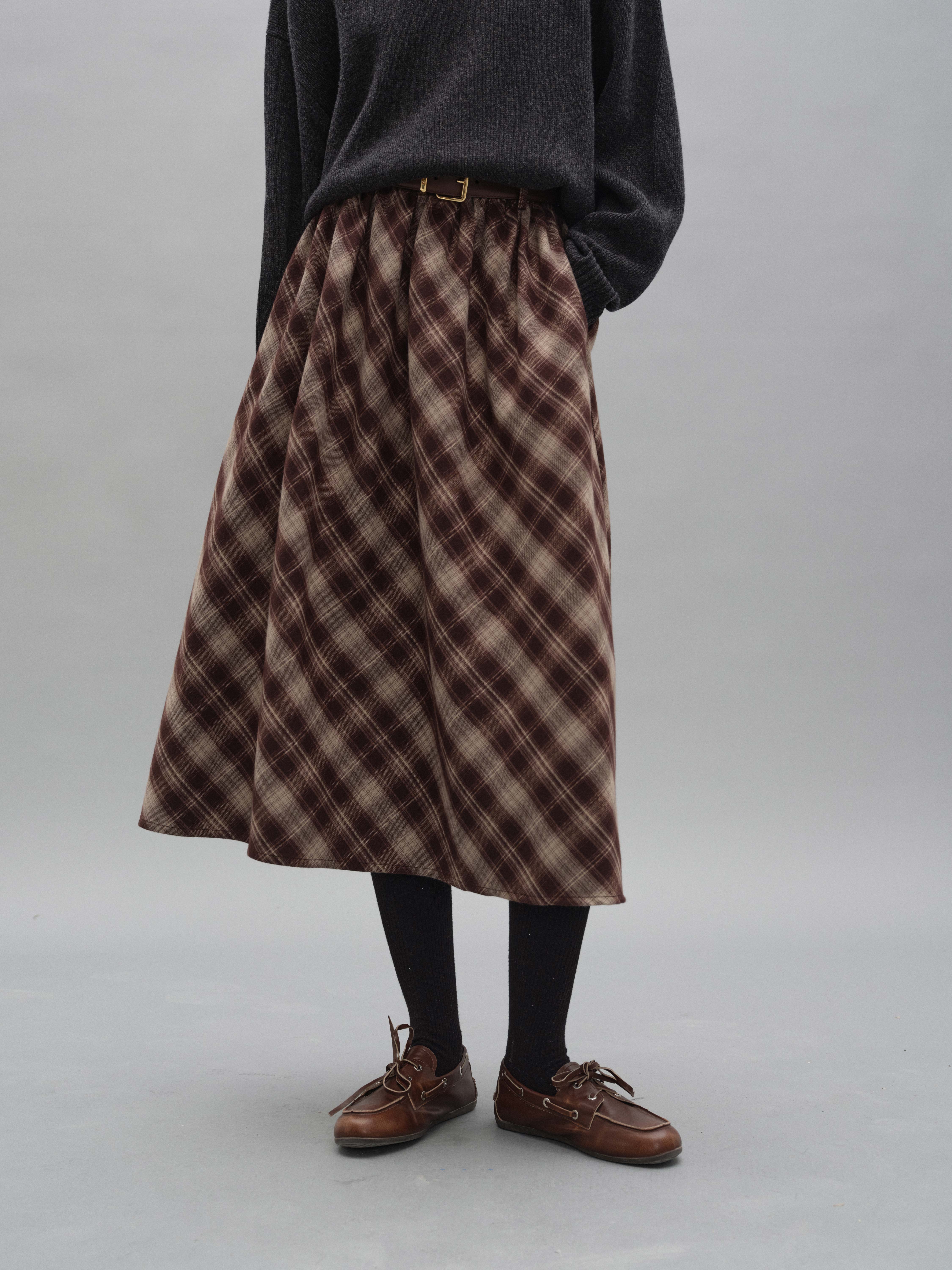 shyshystill/shy202408060/格纹毛呢亲肤舒适褶皱蓬蓬款中长半裙