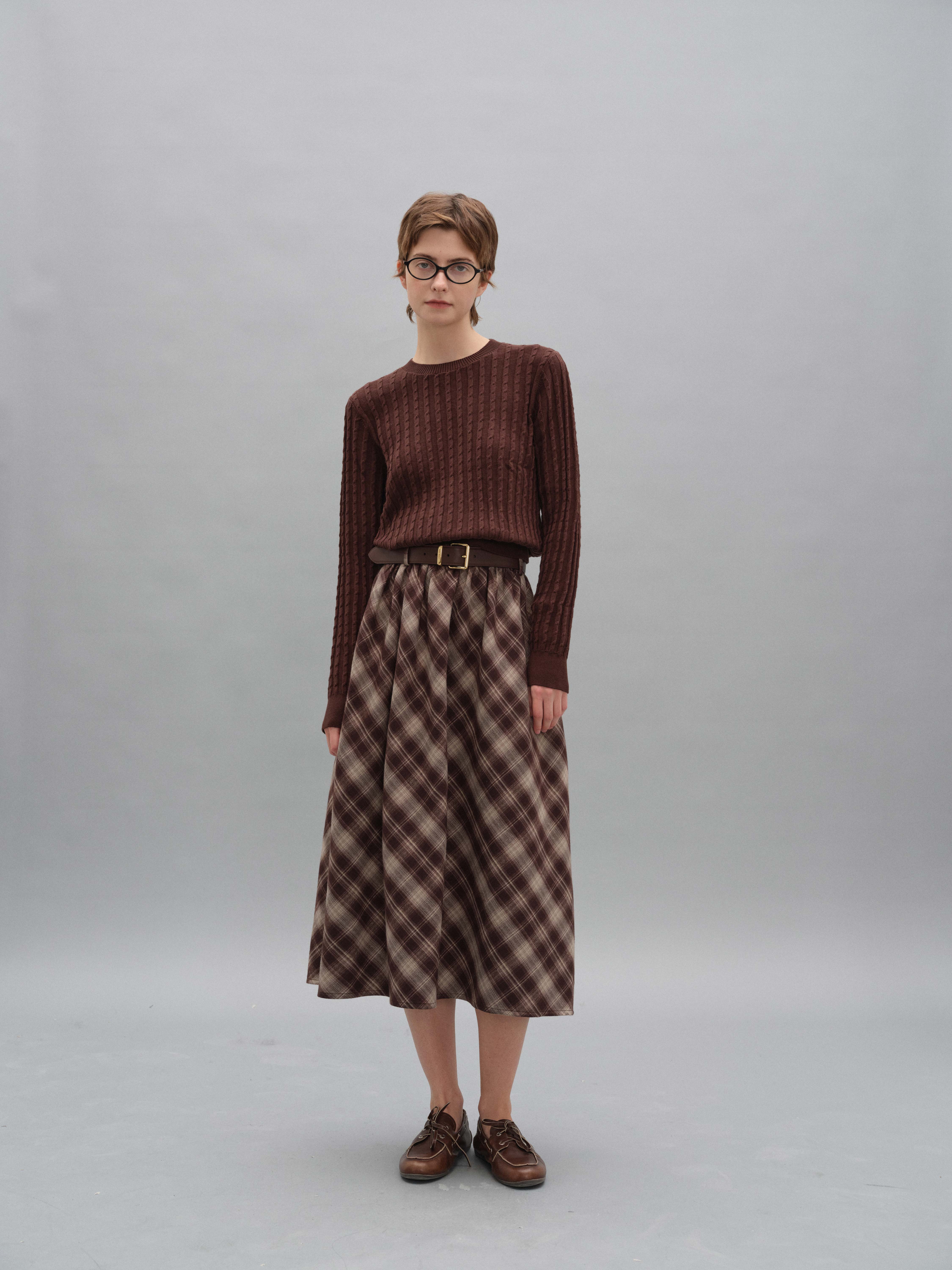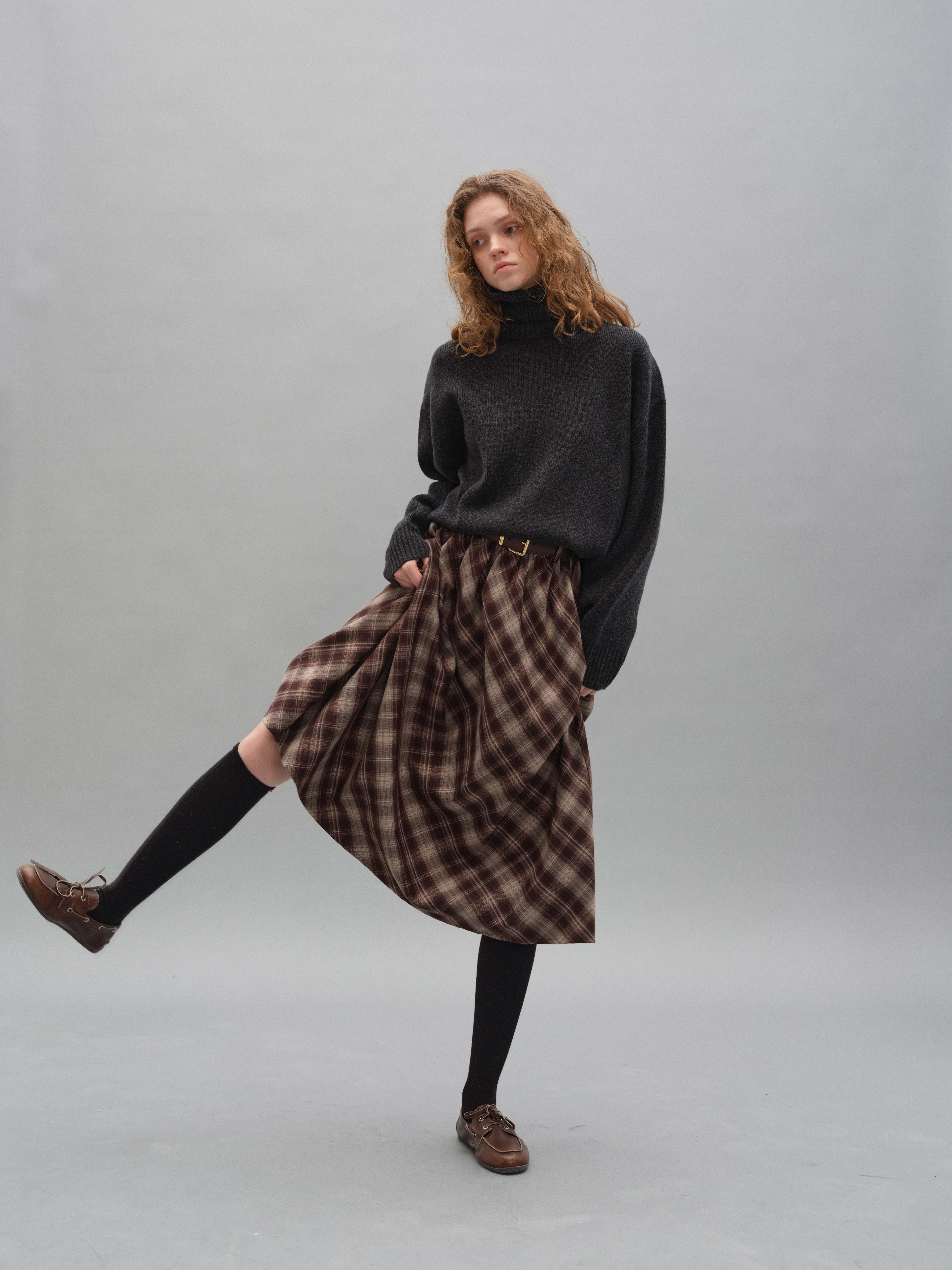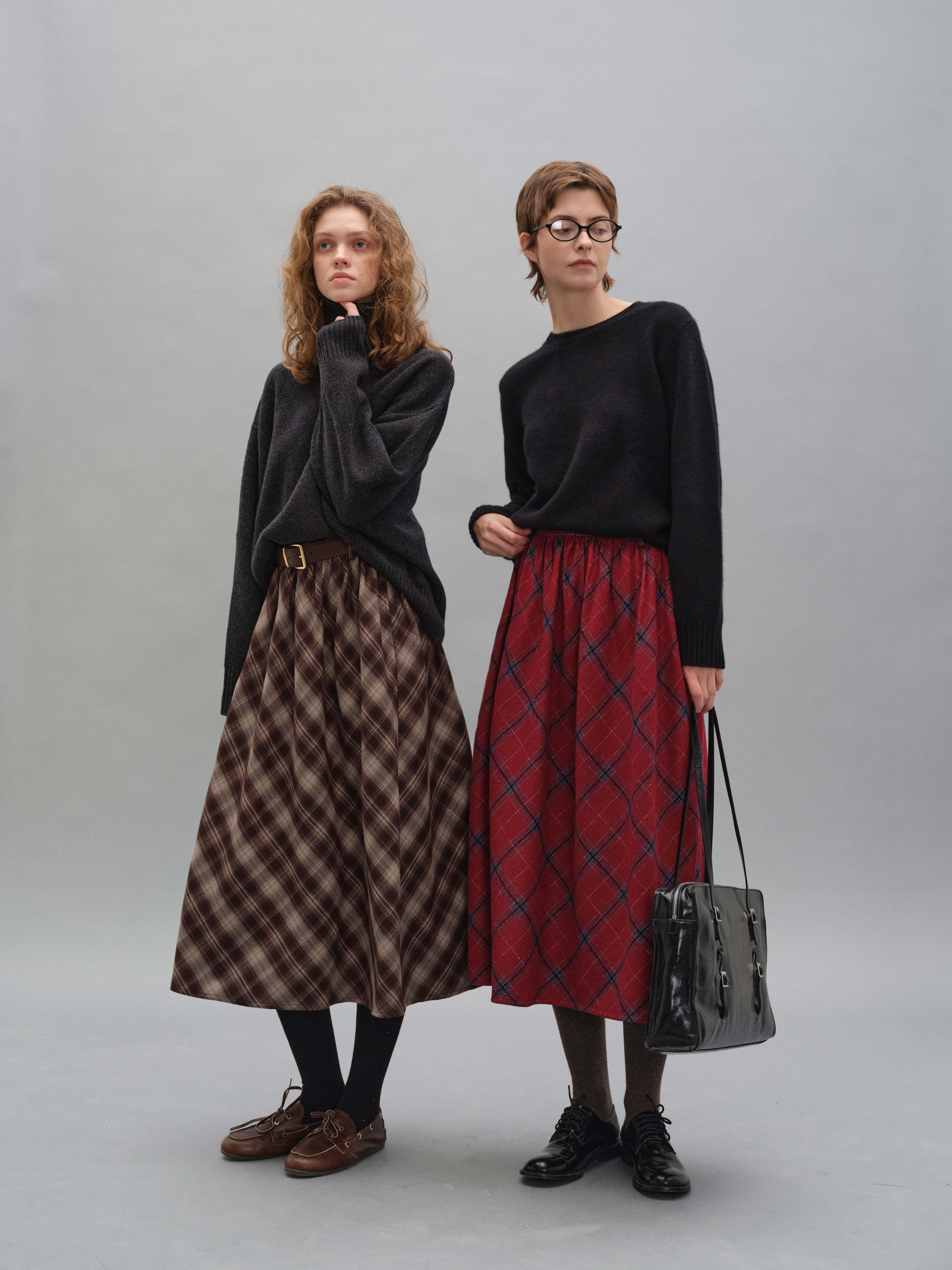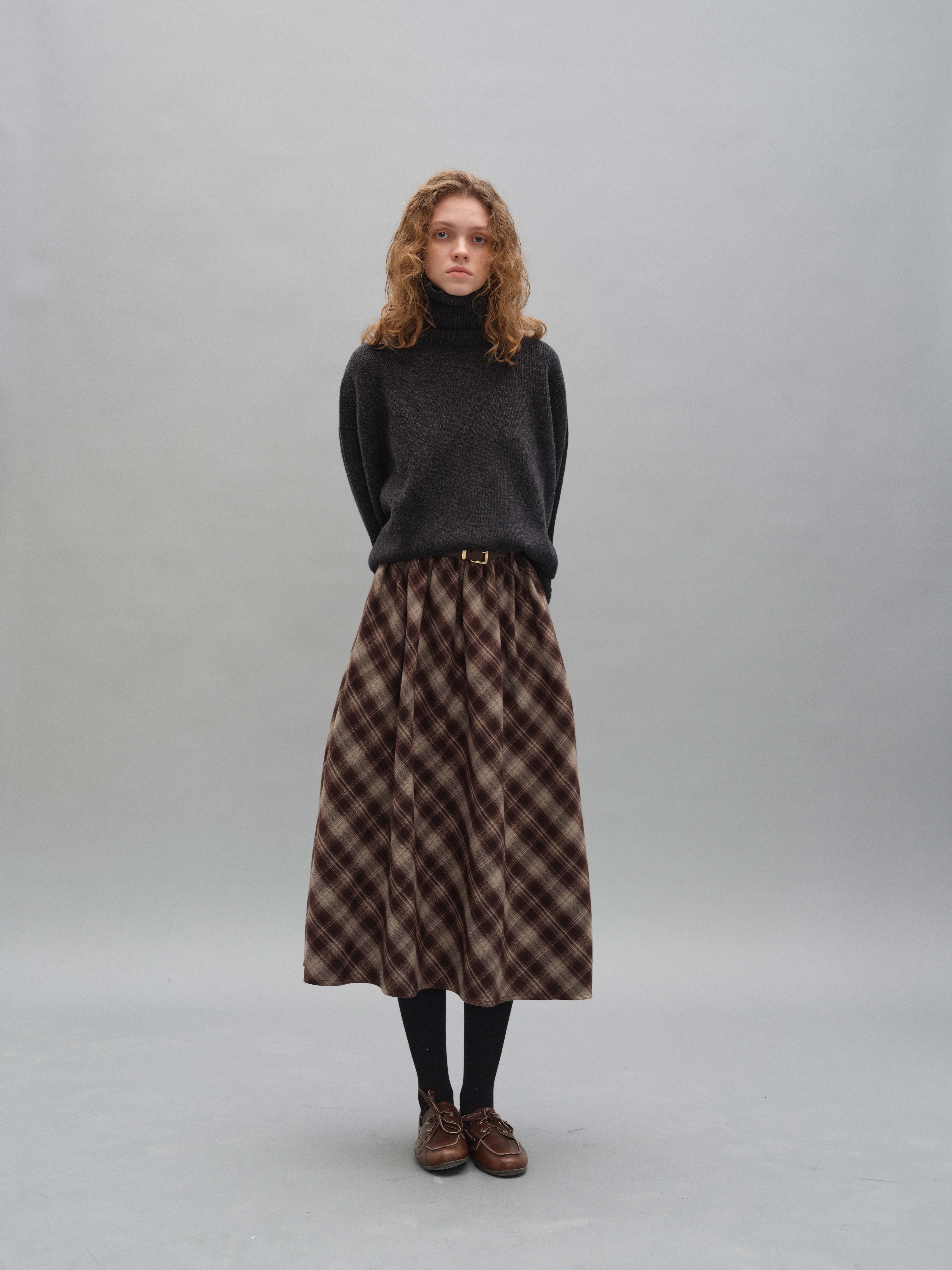 shyshystill/shy202408060/格纹毛呢亲肤舒适褶皱蓬蓬款中长半裙