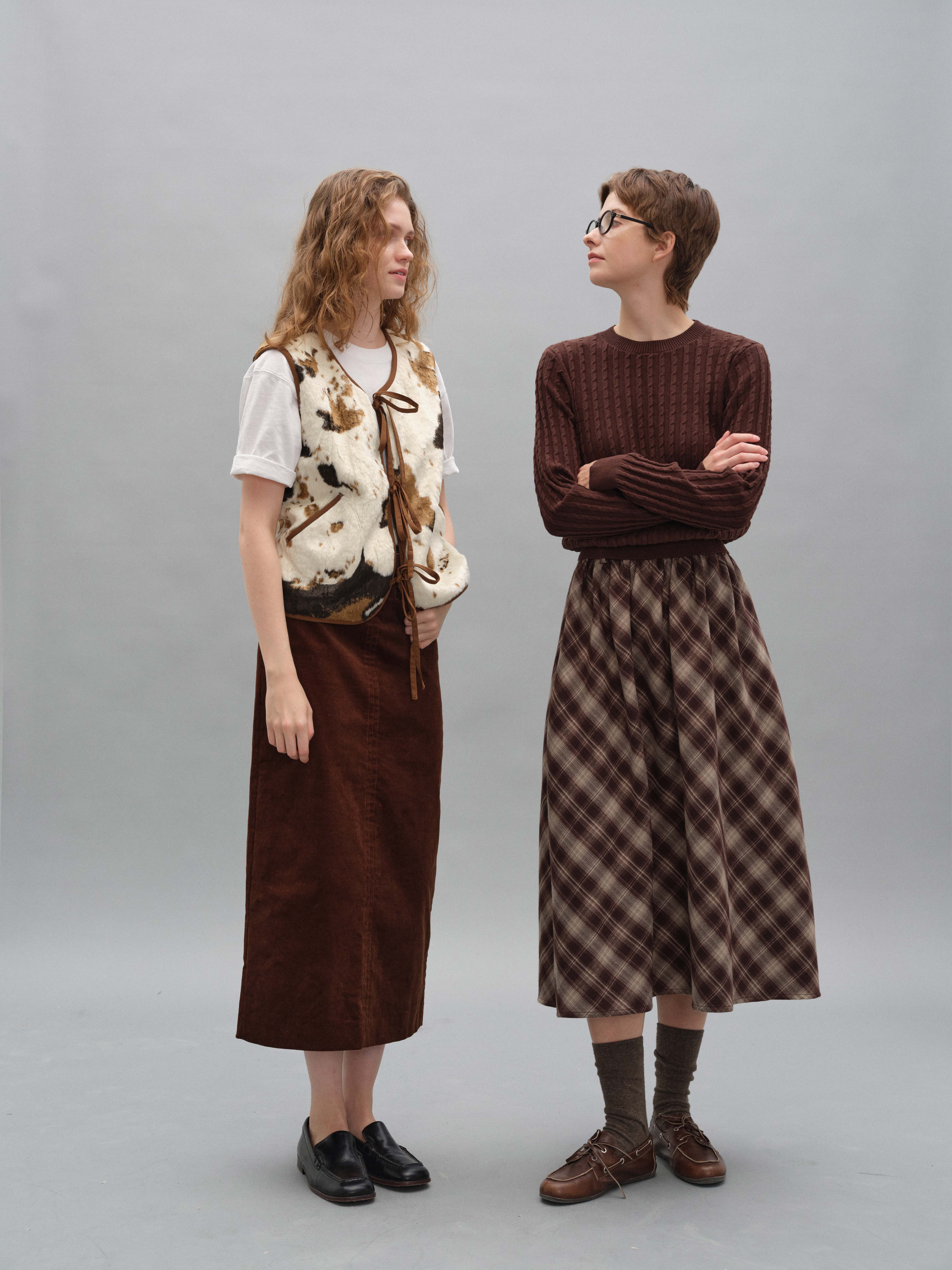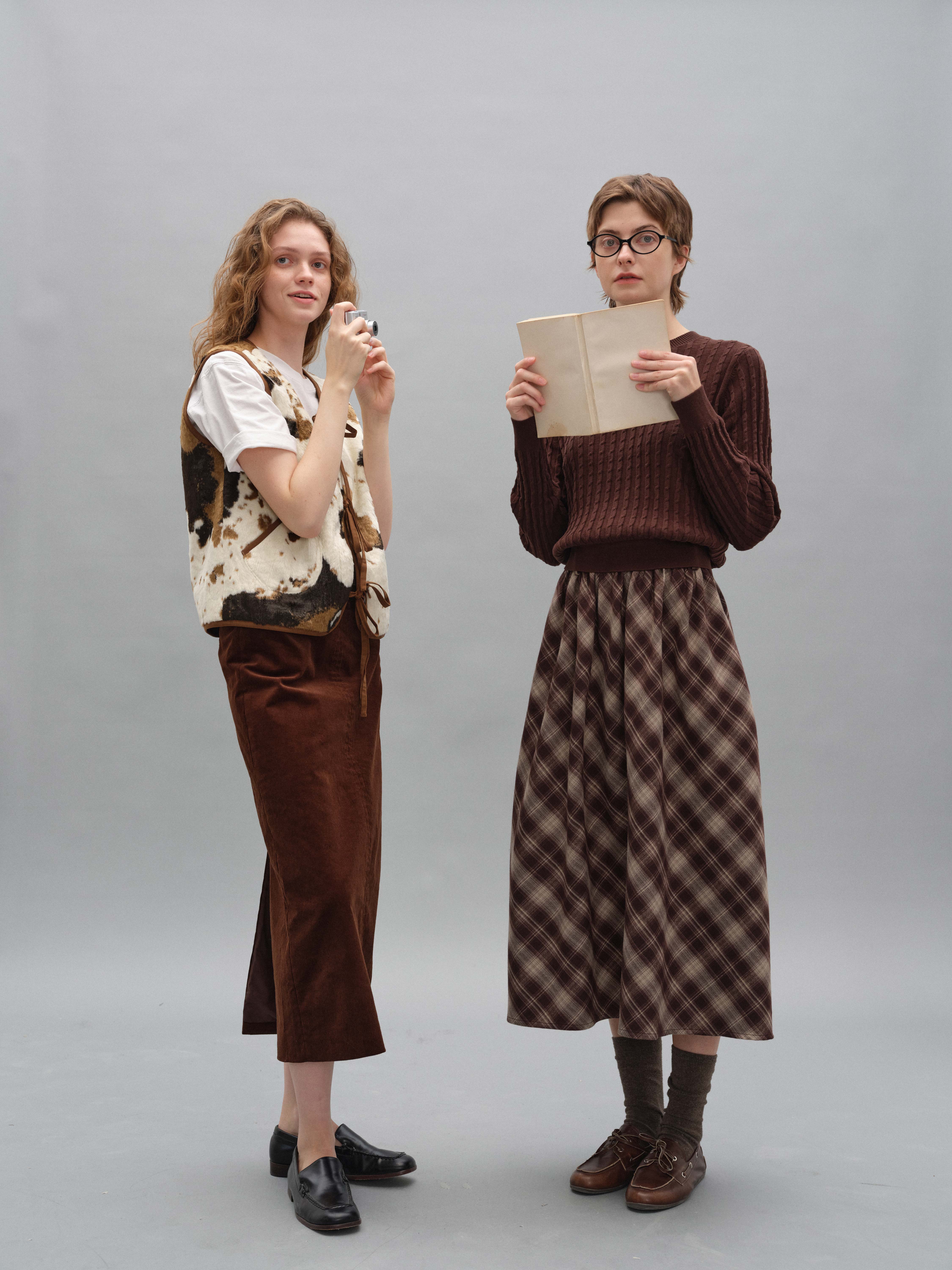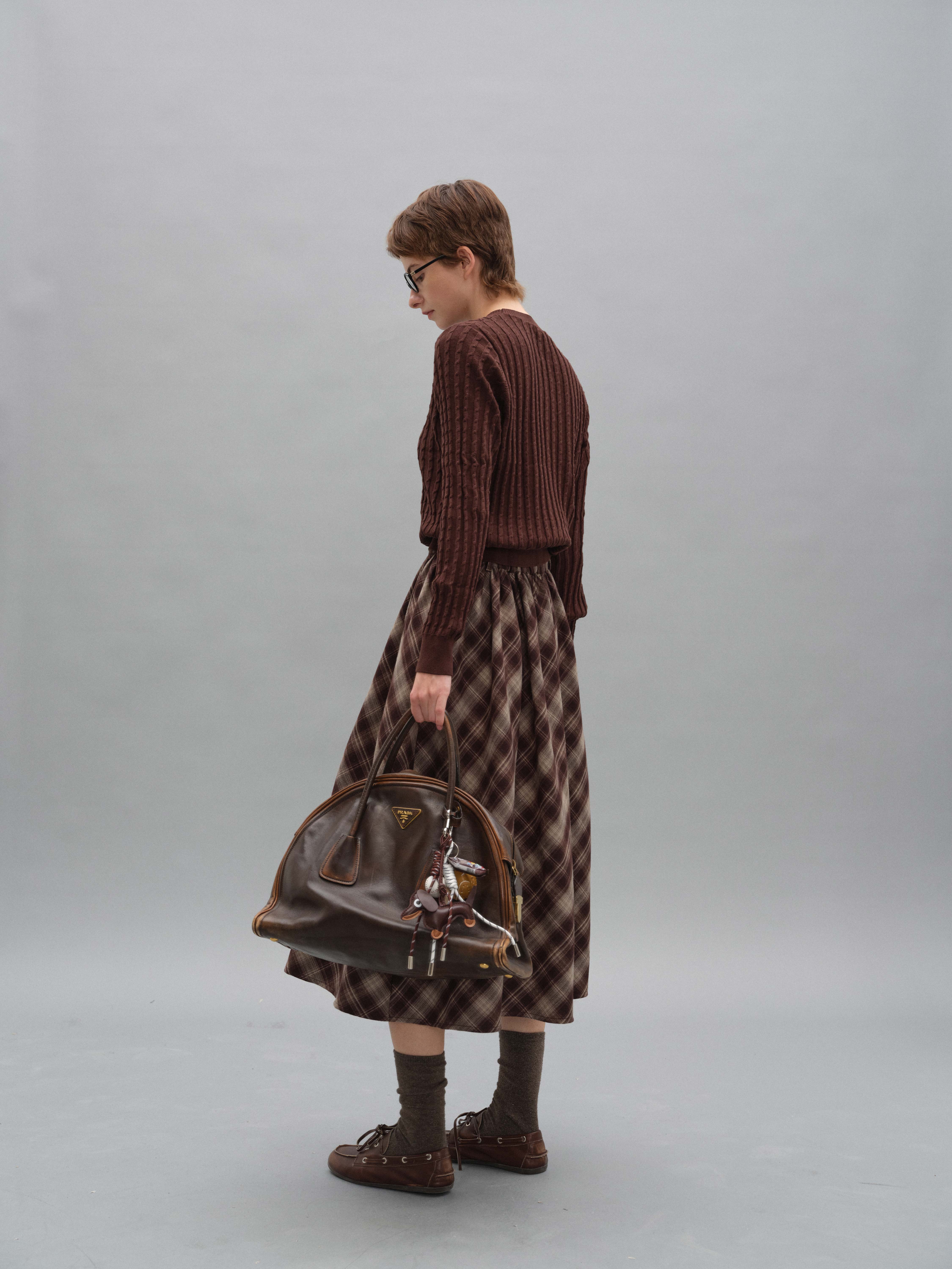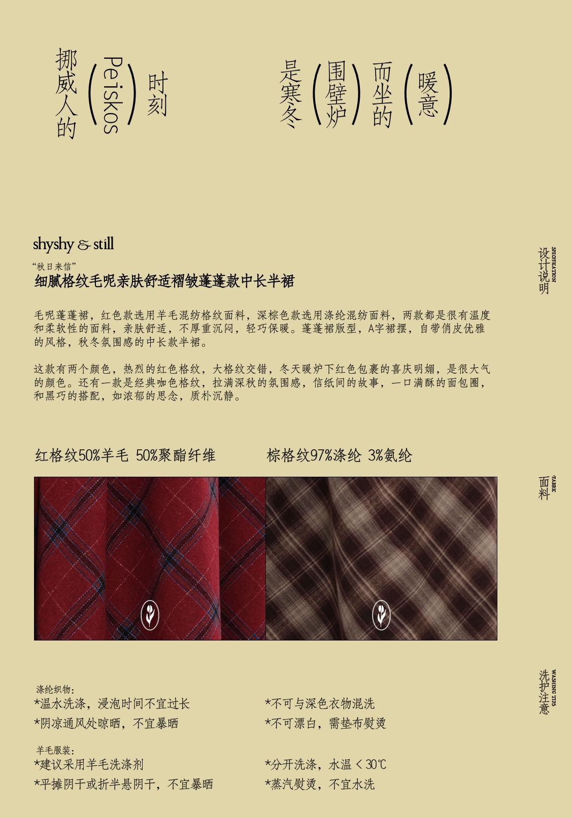 shyshystill/shy202408060/格纹毛呢亲肤舒适褶皱蓬蓬款中长半裙