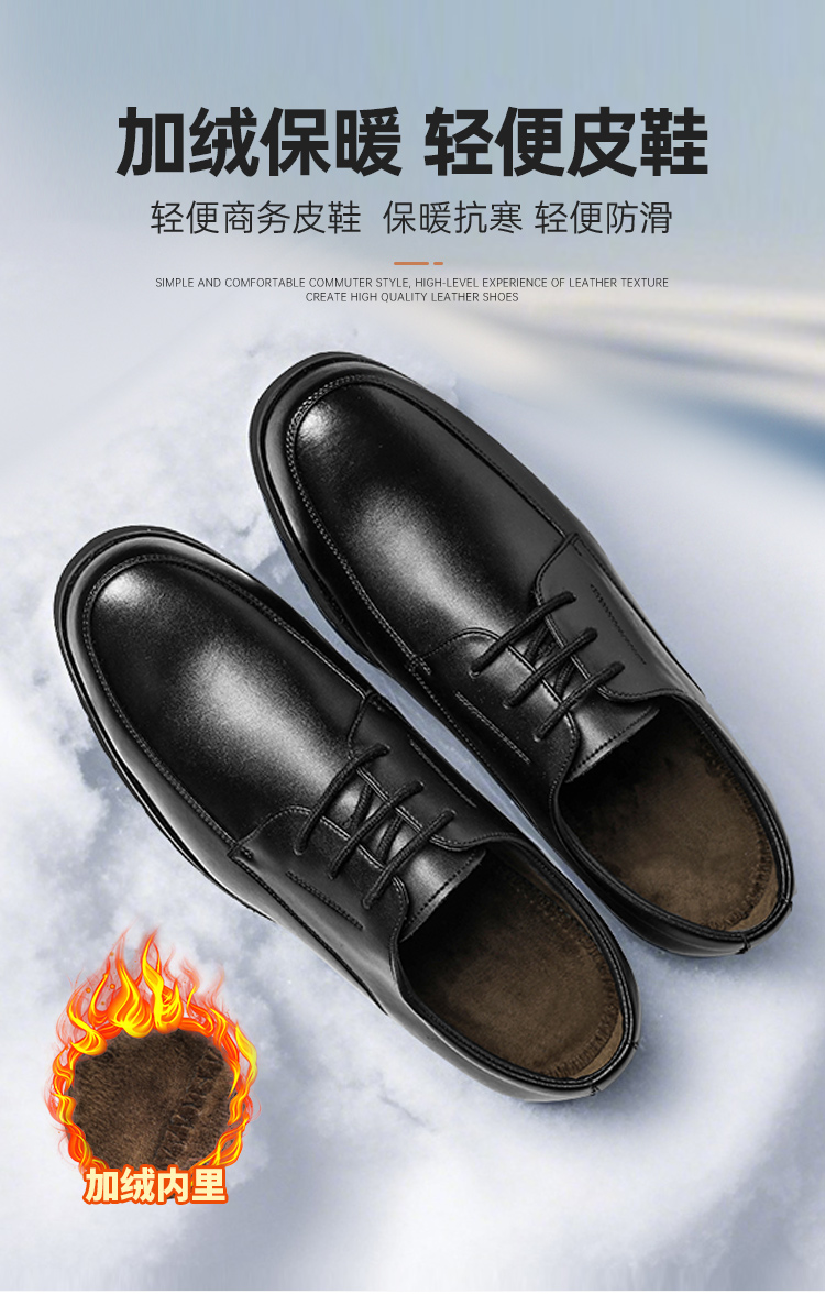 【实付满399送保温杯】【轻便商务皮鞋(加绒款)】皮鞋鞋子男女款橡胶大底防滑耐磨耐腐蚀