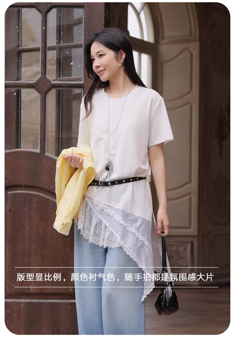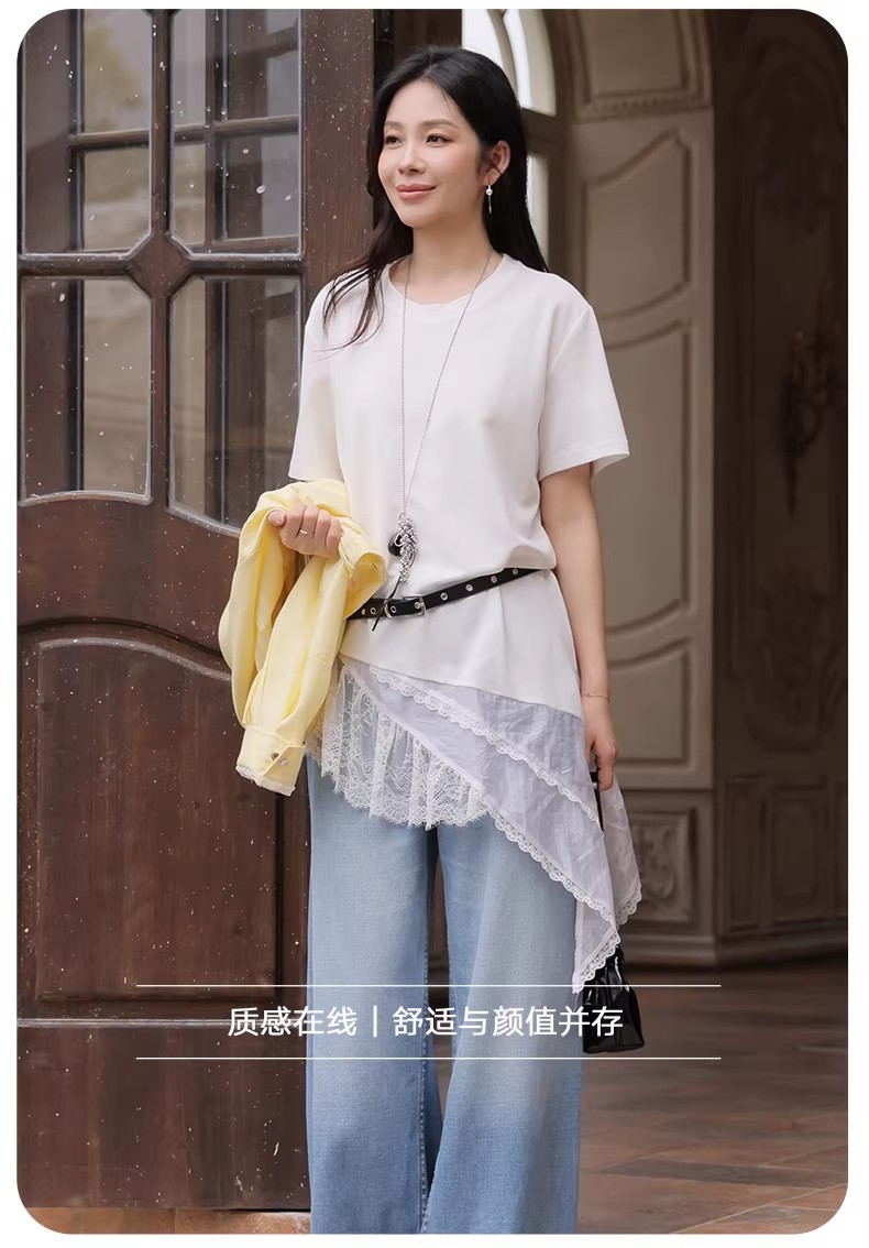 【门店同款】ENJOY夏季蕾丝拼接短袖T恤 170498340