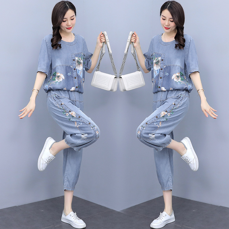 夏季休闲时尚洋气减龄显瘦薄款花色两件套AHM-wxbfb5037