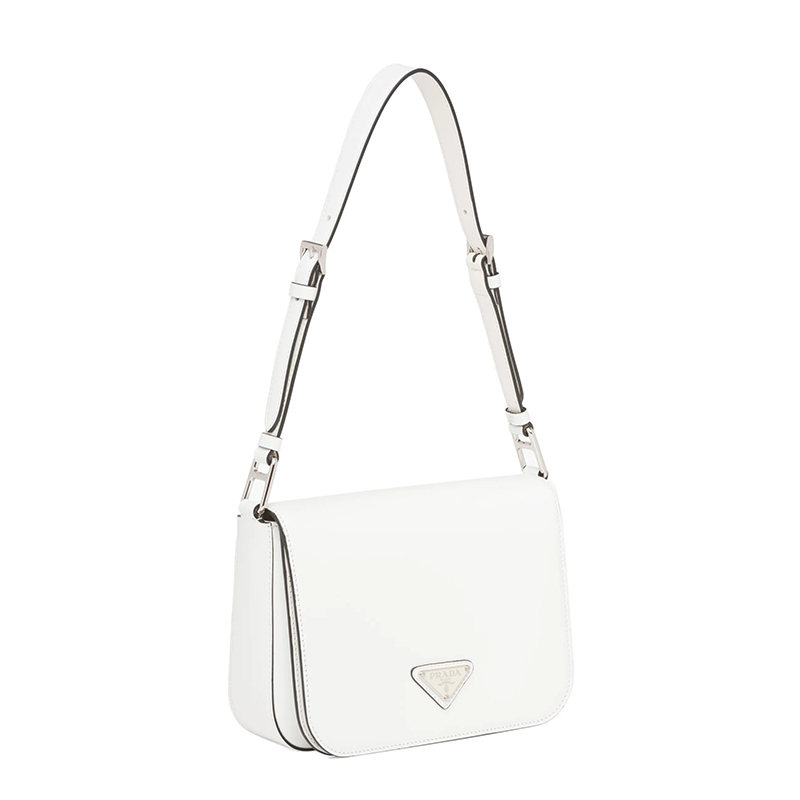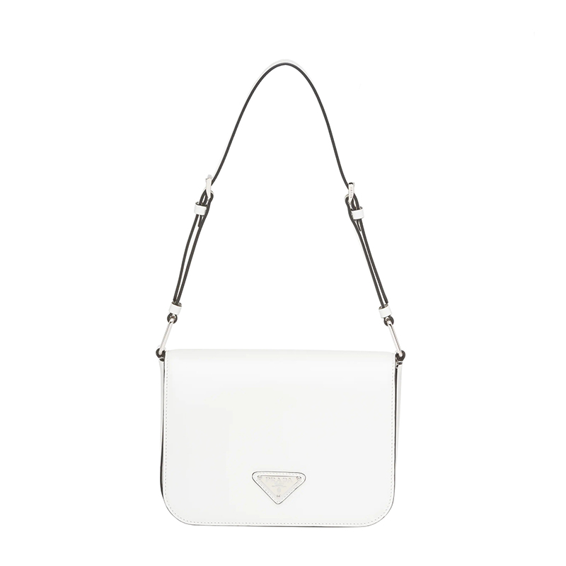 【包税】PRADA/普拉达 21年秋冬新款 女士白色亮面皮革可调式皮革提手磁扣式翻盖开合斜跨手提单肩包1BD308_ZO6_F0PG7_V_HOO