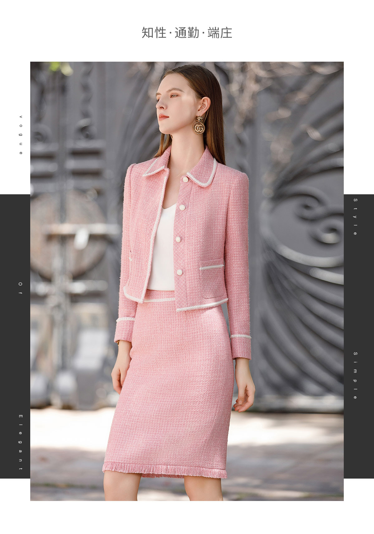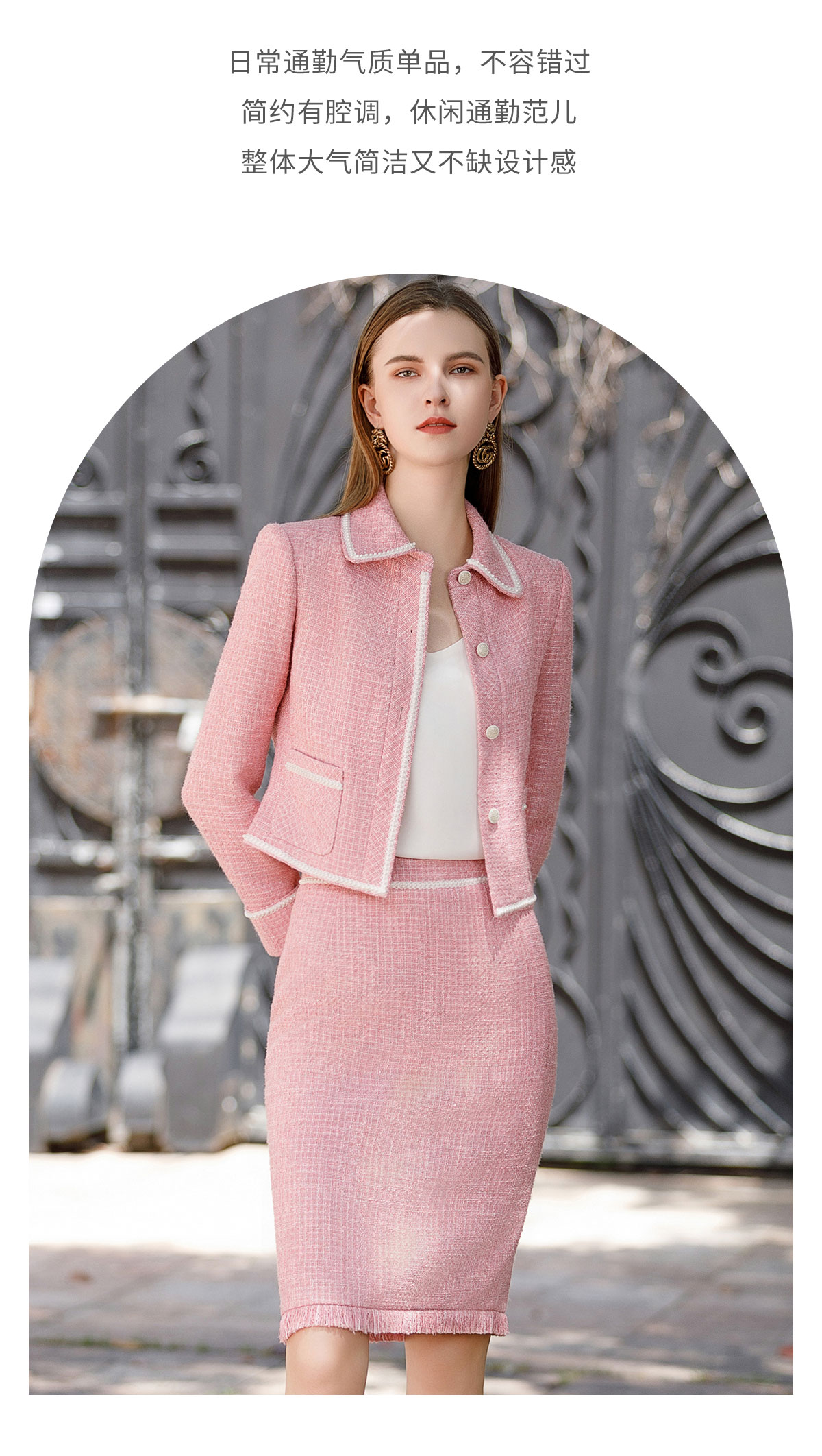 IWY/秋冬新款粉色小香风短外套半裙身两件套女减龄套装CS1902