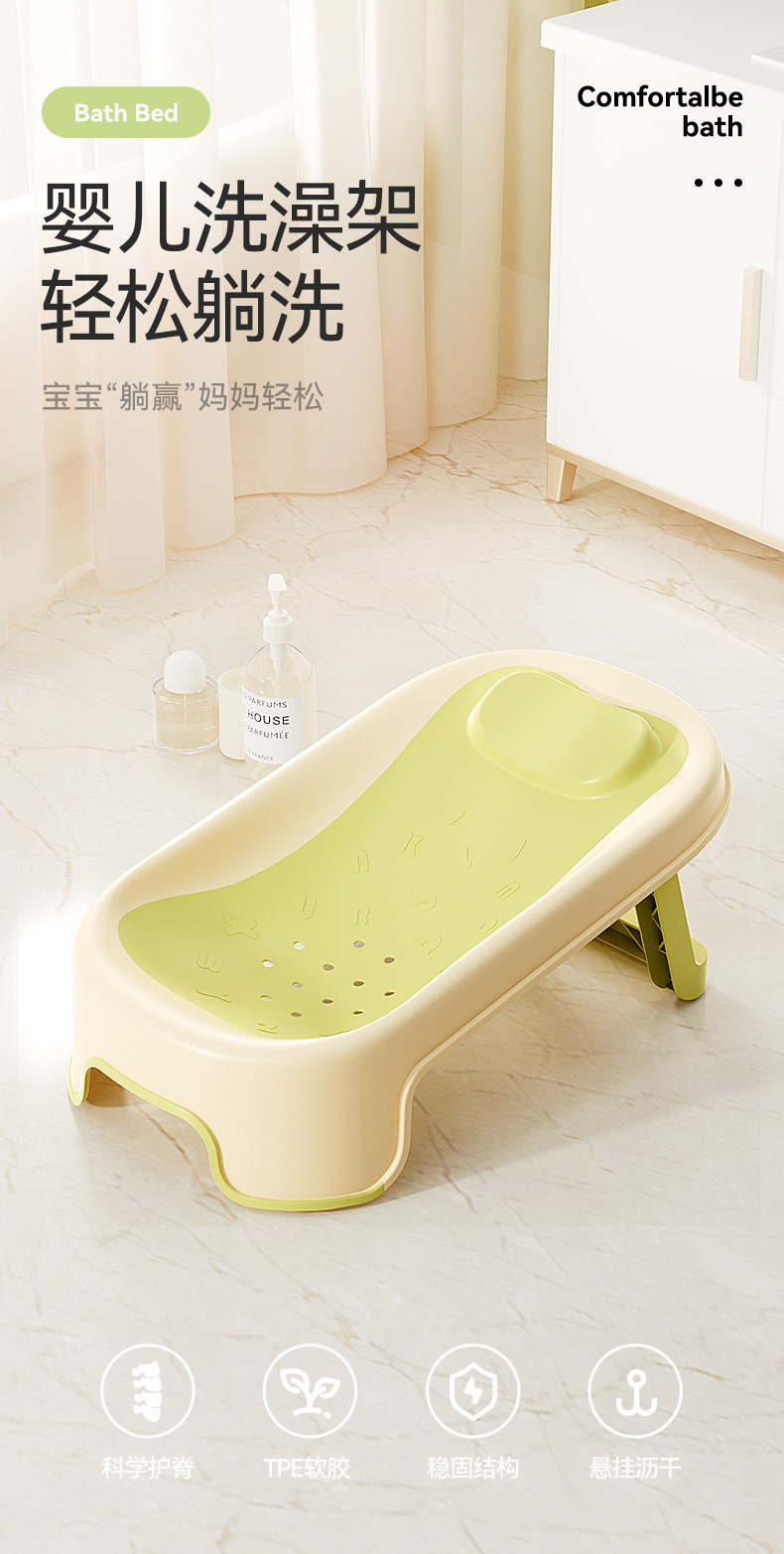 【升级软胶头枕】新生儿宝宝浴架婴儿浴架婴儿洗澡躺托可折叠