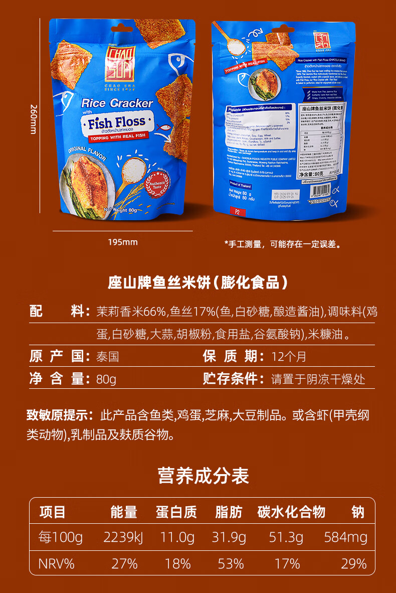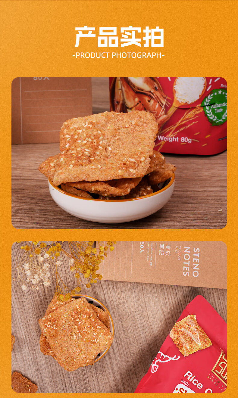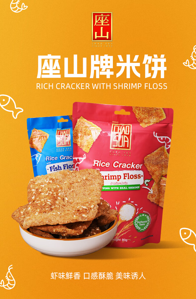 座山牌虾丝米饼/鱼丝米饼80g 虾味鲜香口感酥脆 050754/050755