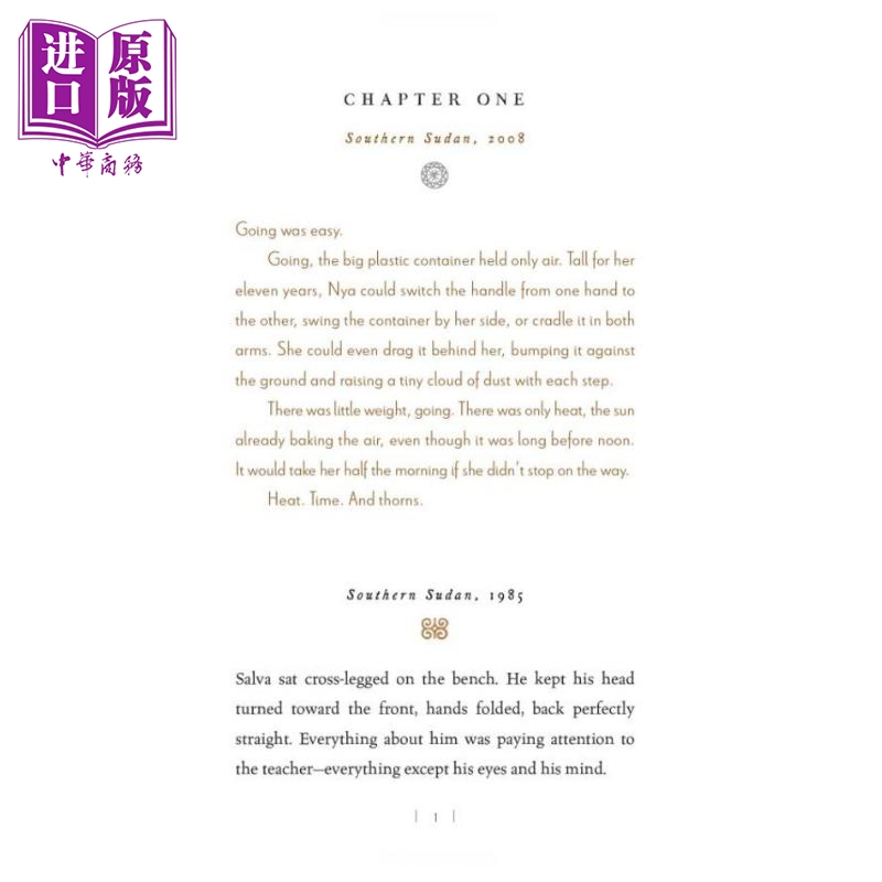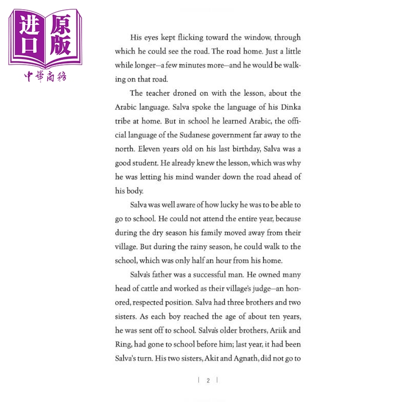 萨尔瓦经历了从孤独到武装叛乱分子的袭击,再到与凶猛的狮子和鳄鱼的接触等各种困难,终成为幸存者,他的故事与尼亚的故事以令人惊讶和感人的方式交织在一起。包括作家琳达·苏·帕克 (Linda Sue Park) 和现实生活中的萨尔瓦·杜特 (Salva Dut) 的后记,小说的原型是萨尔瓦·杜特 (Salva Dut),后者后来为南苏丹创建了水务公司。