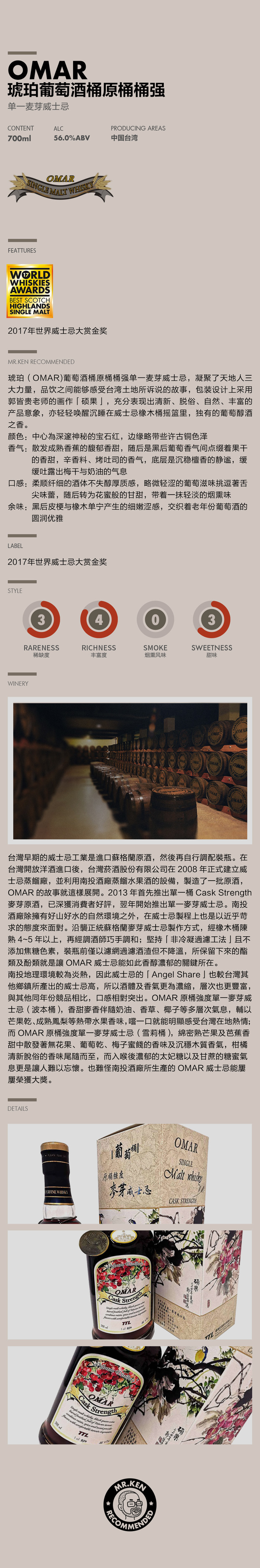琥珀(OMAR)葡萄酒桶原桶桶强 单一麦芽威士忌