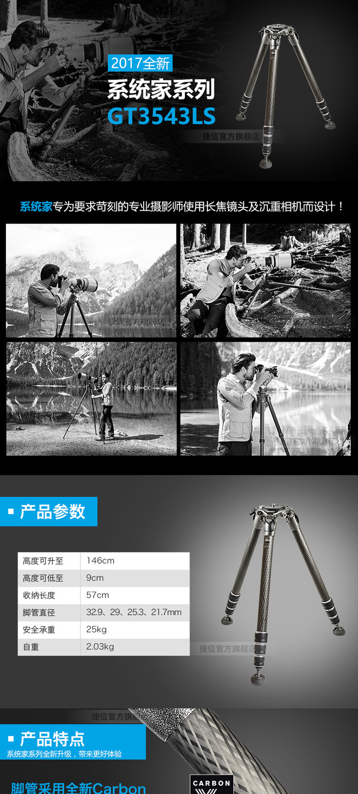 狼族优选丨捷信GT3543LS系统家系列 碳纤维单反相机 稳定坚固 三脚架