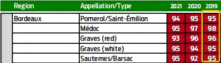 此年份是波尔多的经典大年,《葡萄酒爱好者》(Wine Enthusiast)给波尔多各大产区打出了 95-98 的高分评价。