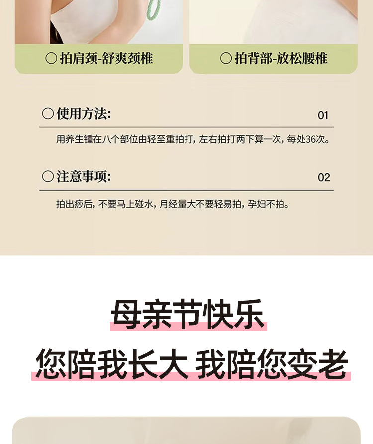 [小滋心选]【活动价¥14.9】【妈妈生日礼物】母亲节端午节礼品 艾草锤养生颈腰椎按摩锤实用小礼
