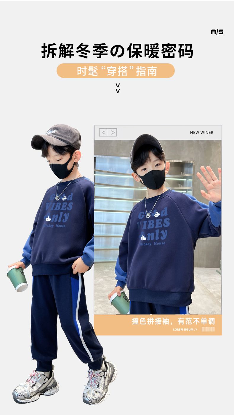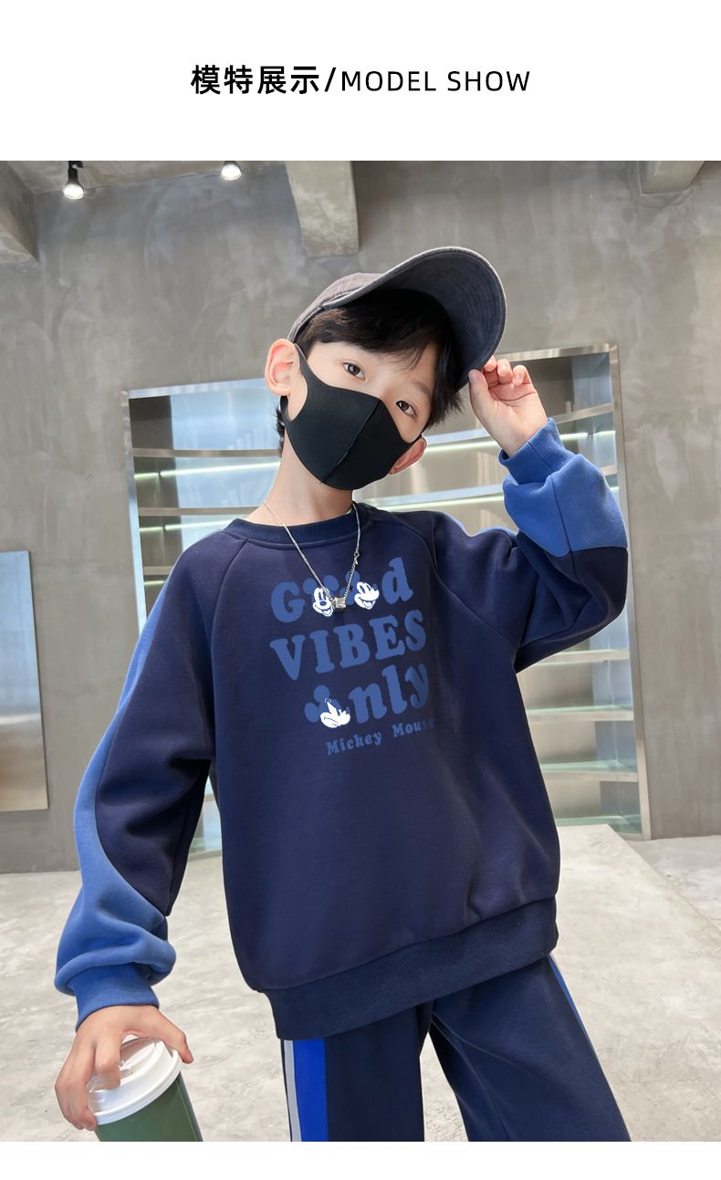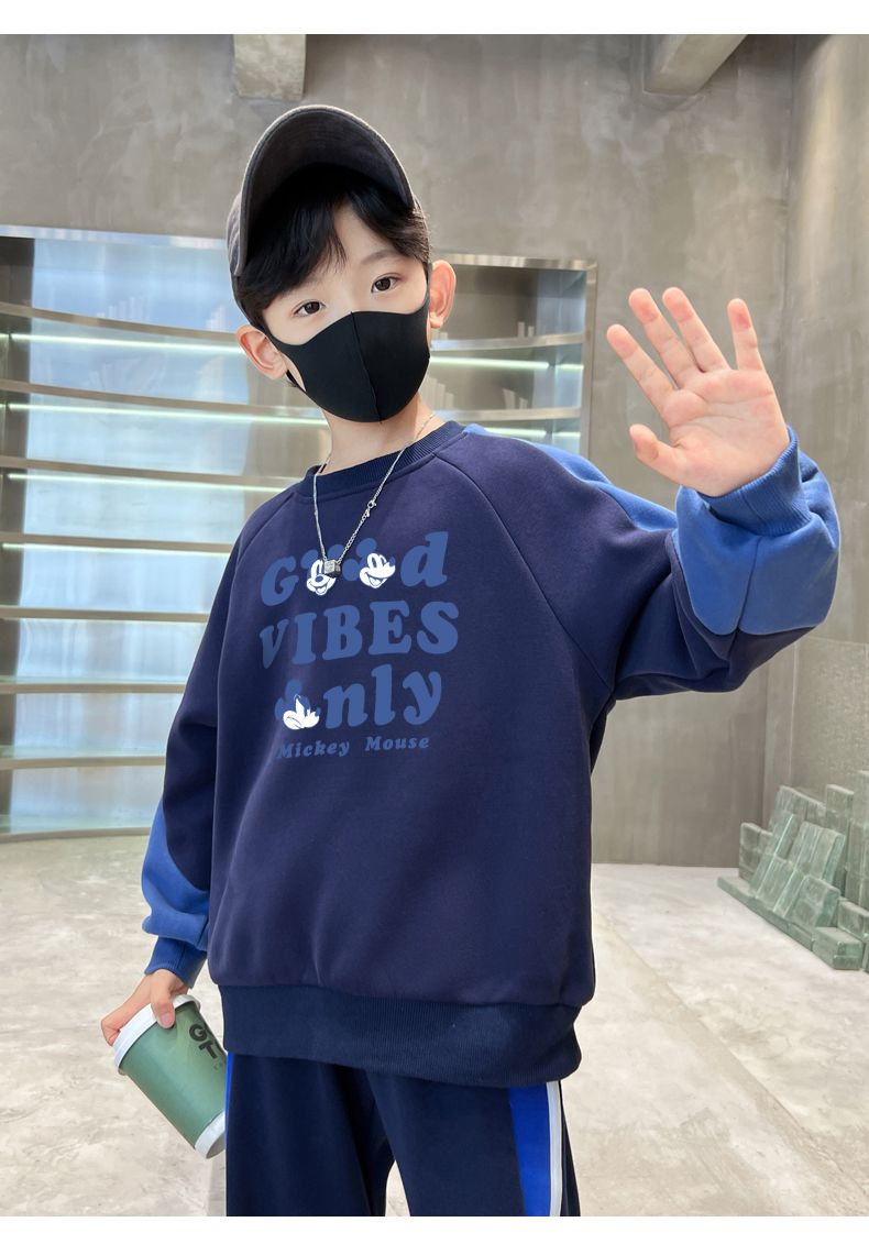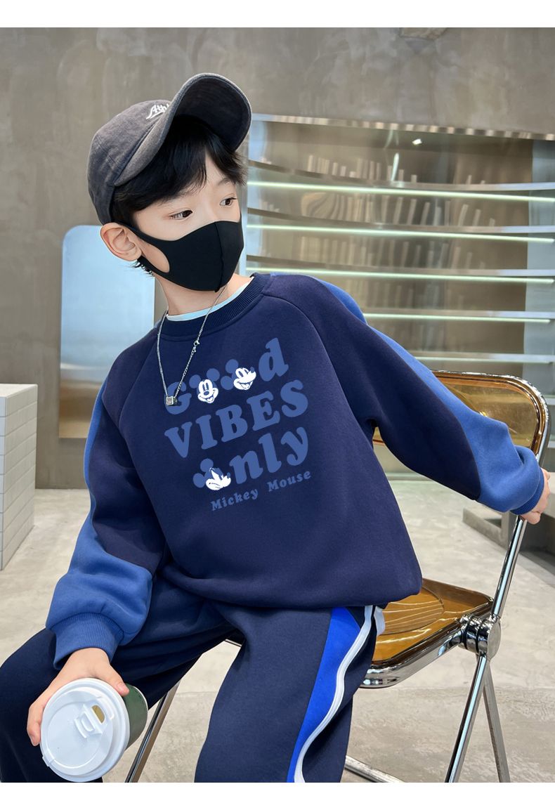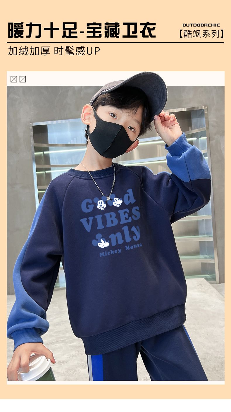迪士尼男童加绒卫衣加厚冬季2024新款儿童上衣男大童打底衫一体绒