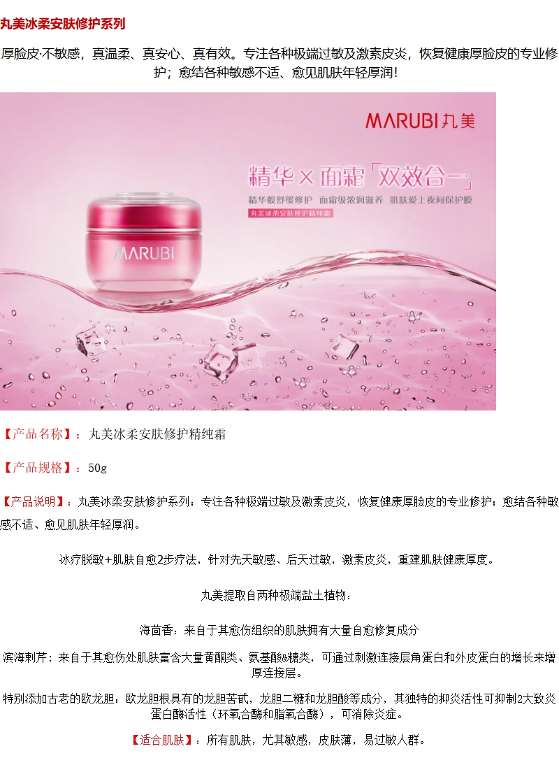 【YZ】丸美冰柔安肤修护精纯真霜50g 镇 敏舒缓补水保湿面霜增厚皮脂膜