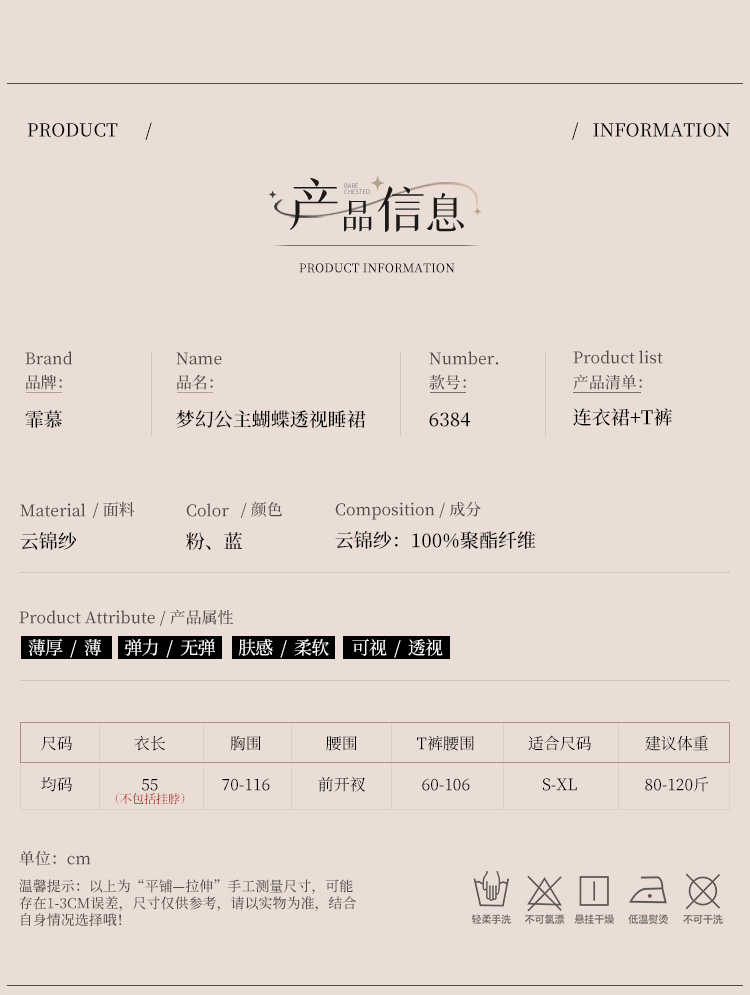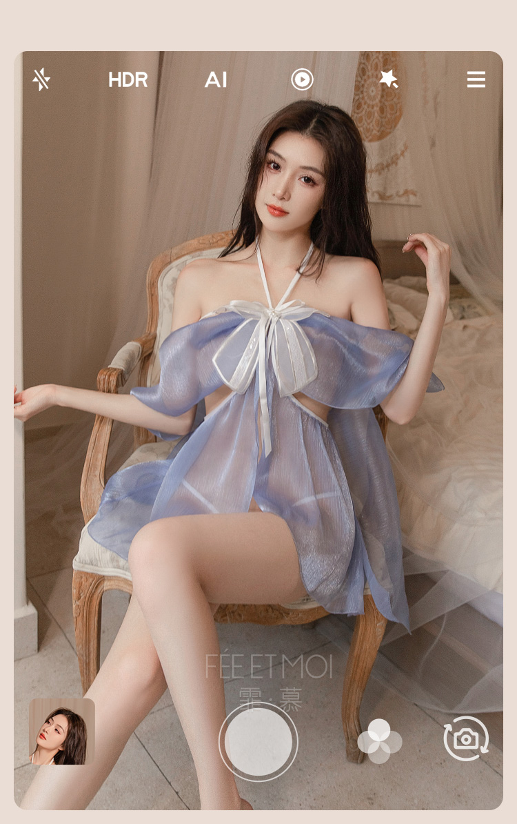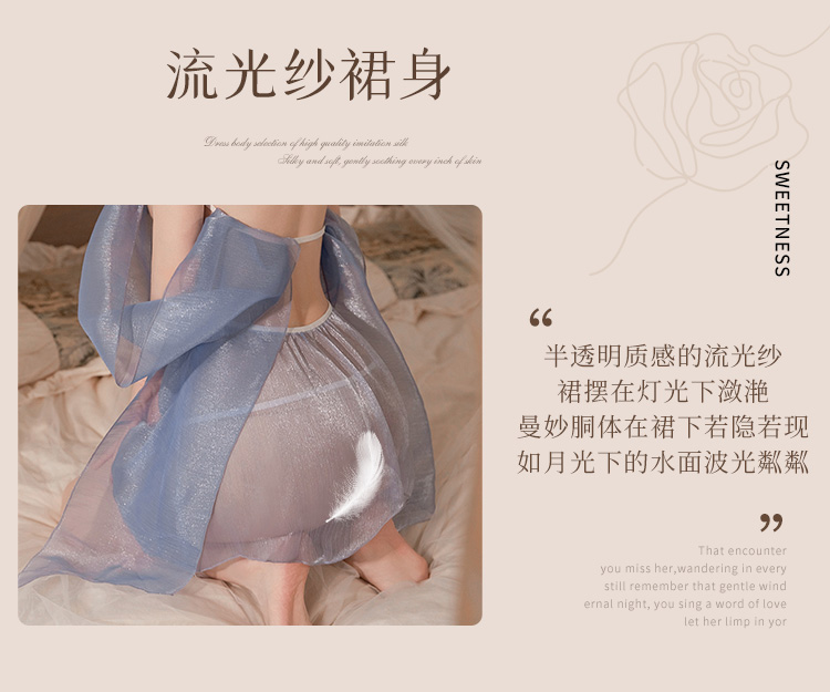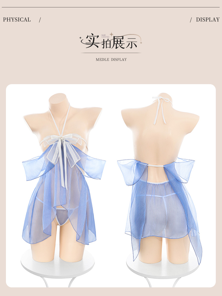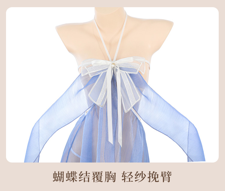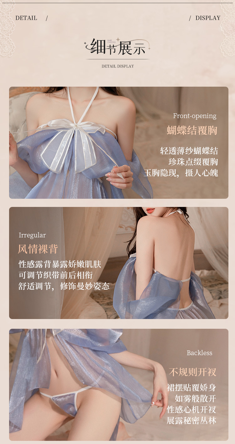 霏慕 梦幻公主蝴蝶透视睡裙6384 露肩睡衣情趣内衣诱惑透视免脱