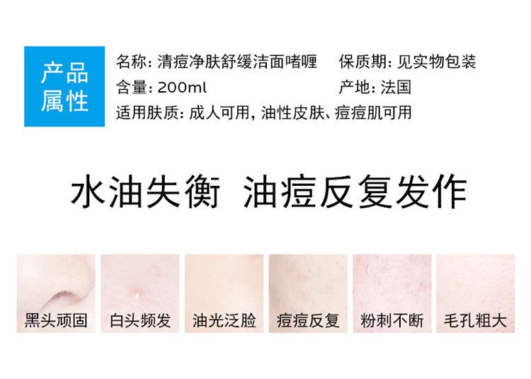 【预售 急单慎拍】La Roche Posay理肤泉清痘净肤舒缓洁面啫喱200ML