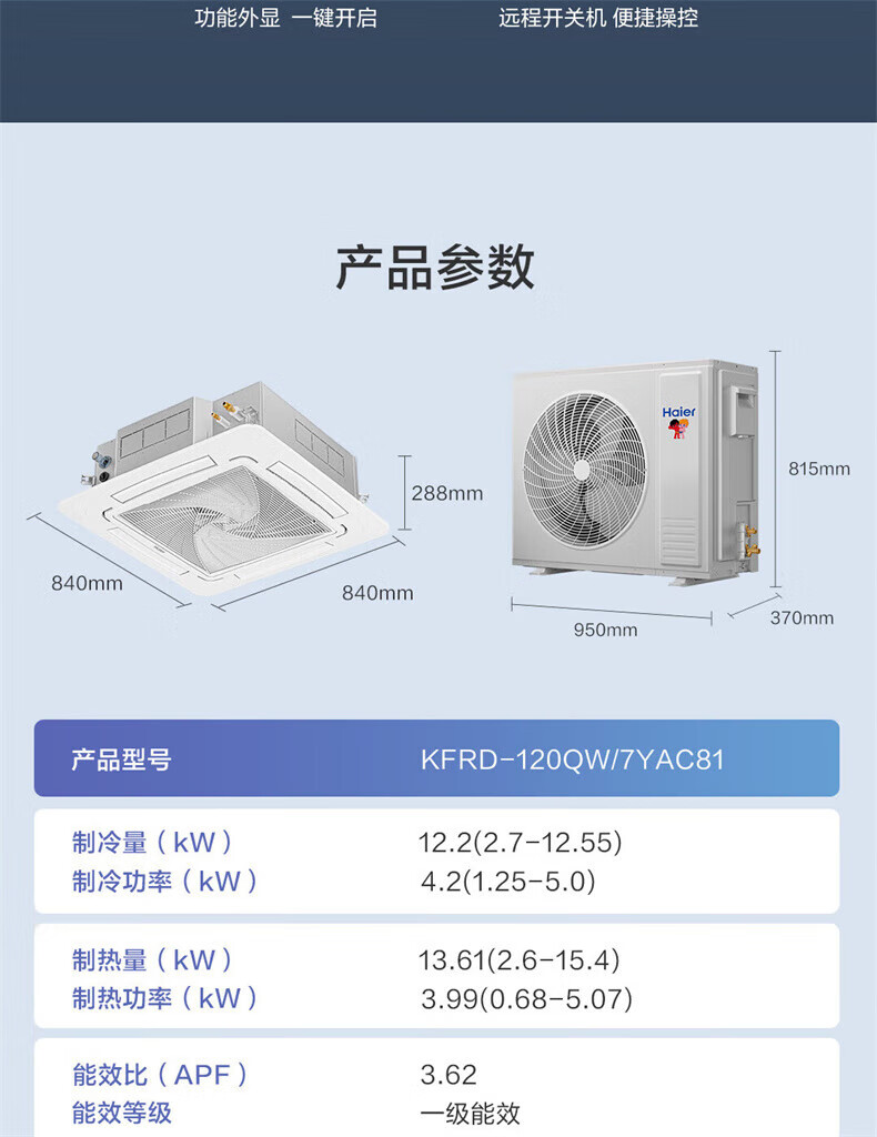 海尔天花机5匹吸顶空调中央空调商用变频隐藏式吊顶吸顶式空调嵌入式商铺办公室厂房空调 5匹 一级能效 全直流变频YAC81