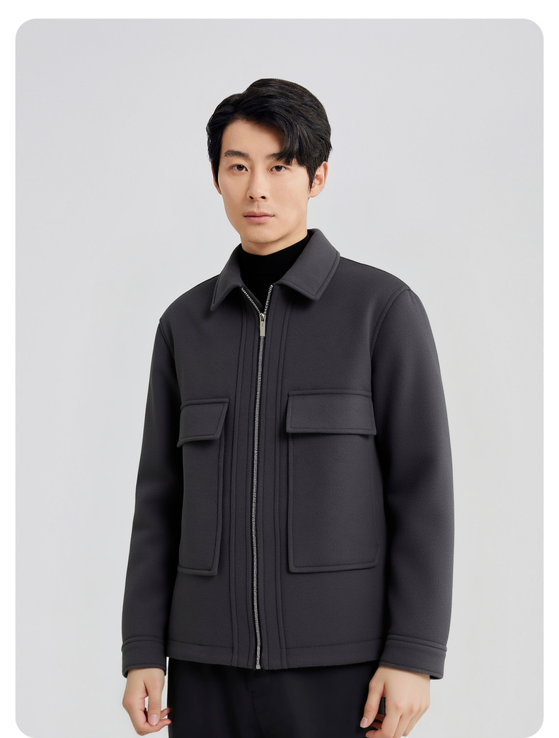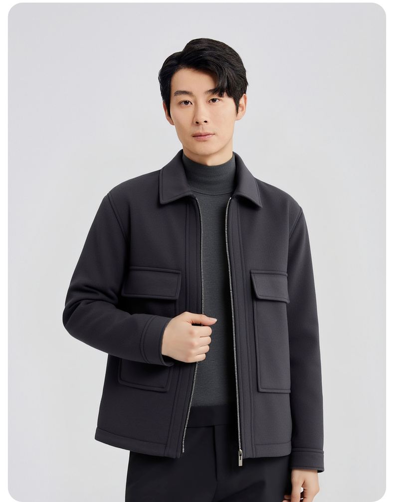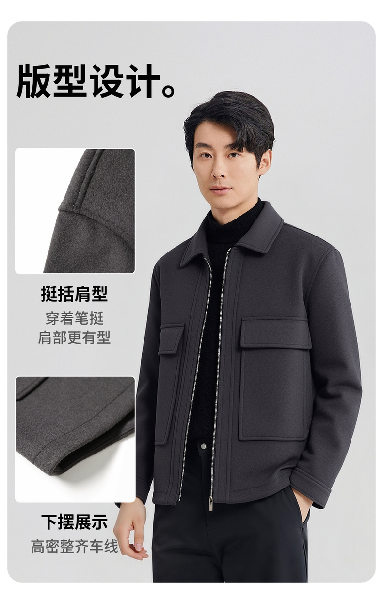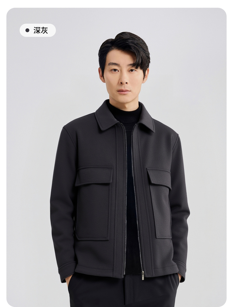 【含绵羊毛】圣得西男士毛呢夹克2025秋季新款保暖舒适翻领外套