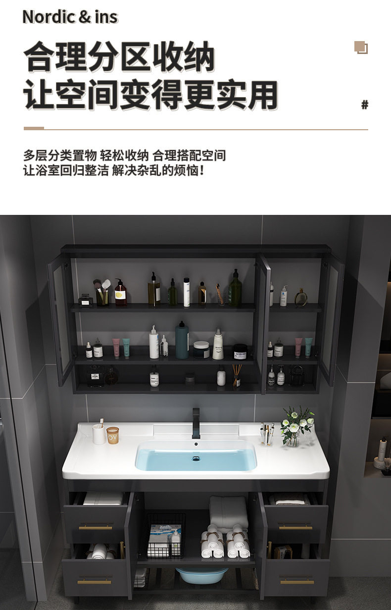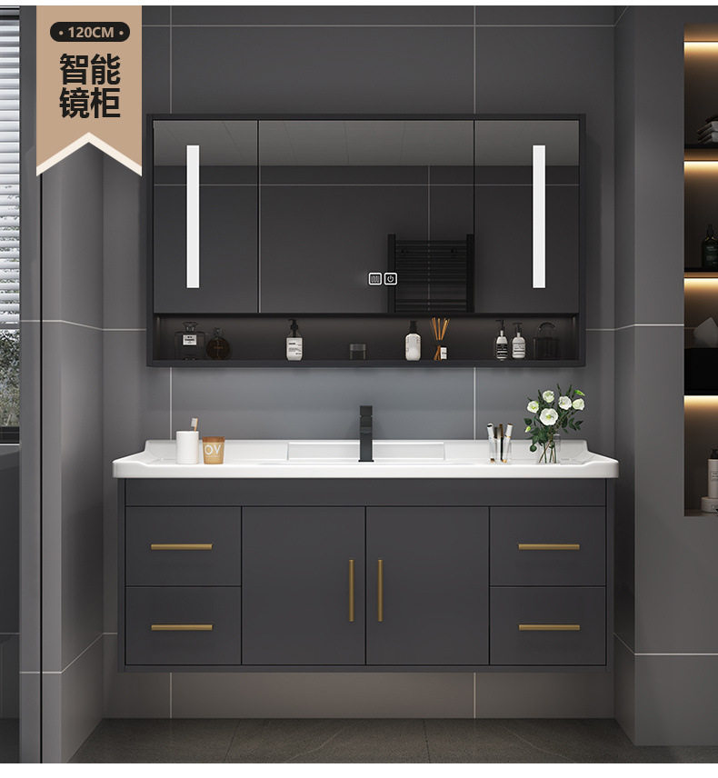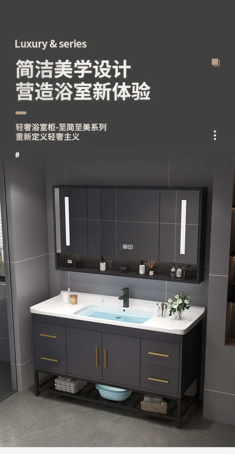 轻奢组合陶瓷洗漱洗手盆台洗脸盆一体浴室柜台盆柜卫浴实木