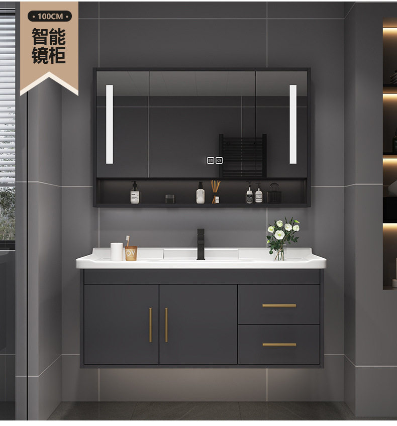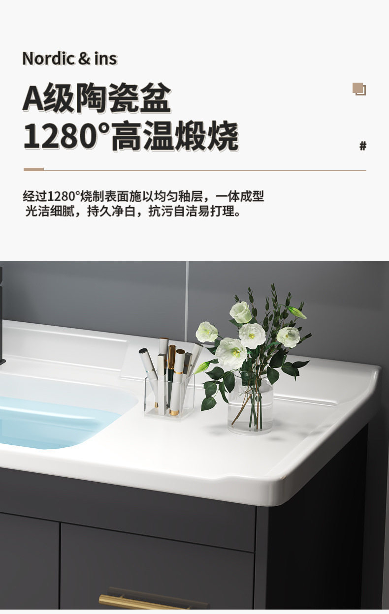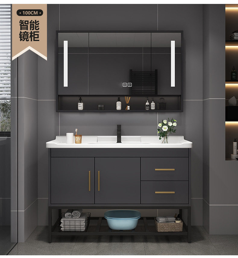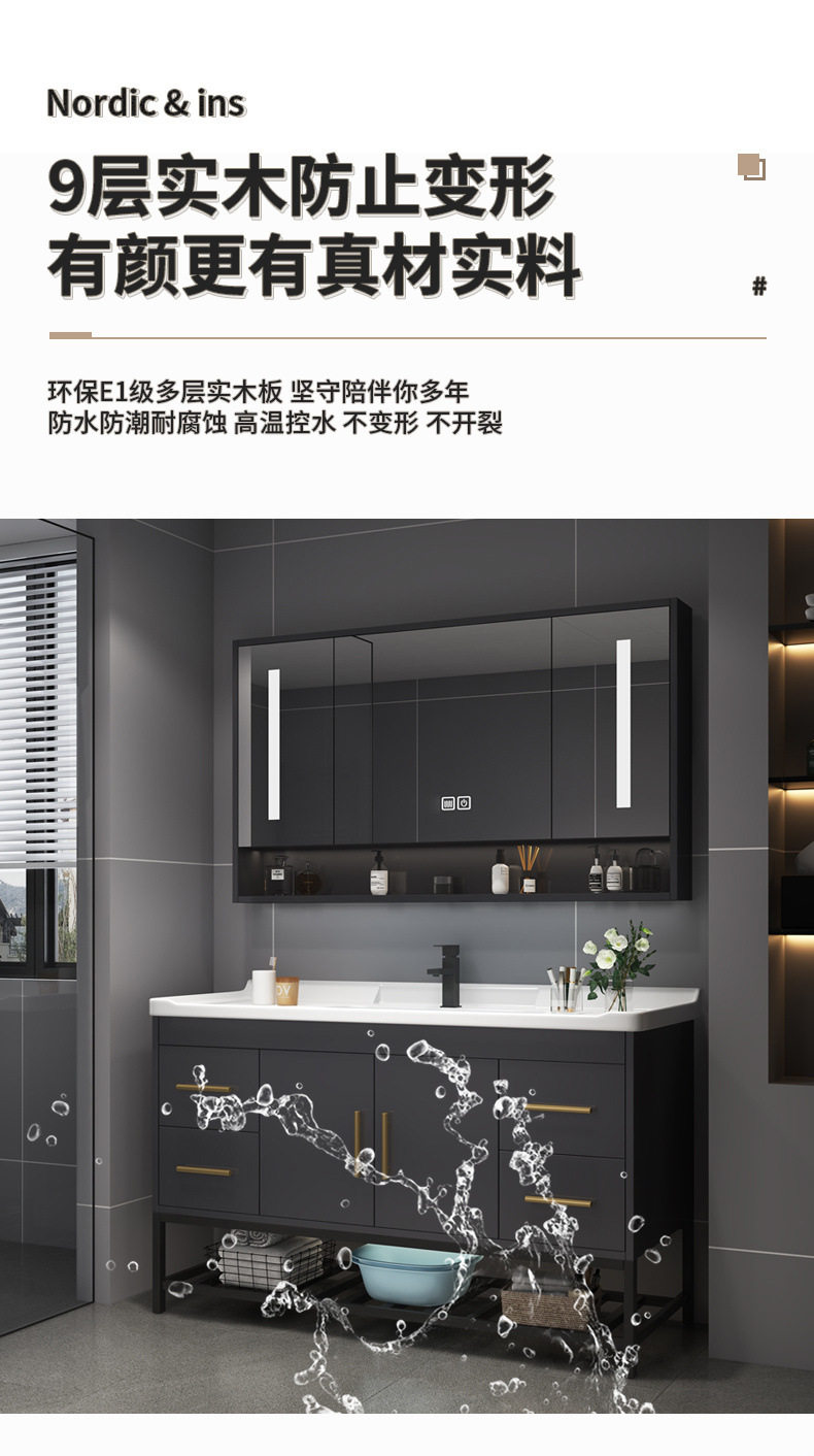 轻奢组合陶瓷洗漱洗手盆台洗脸盆一体浴室柜台盆柜卫浴实木