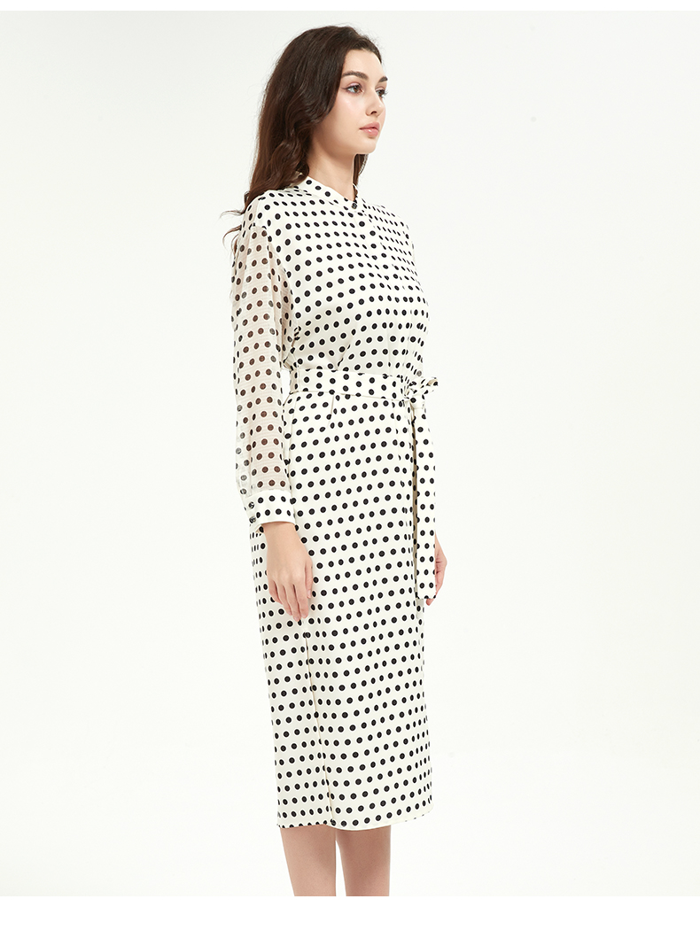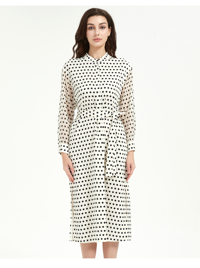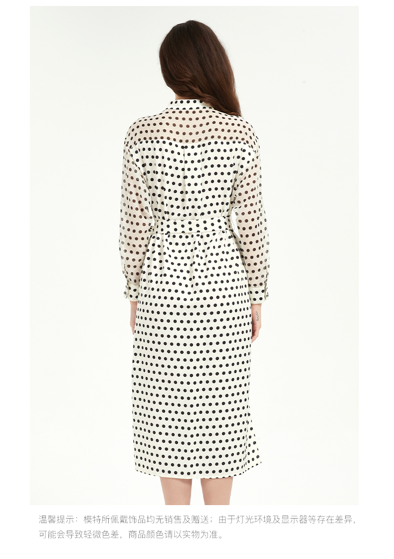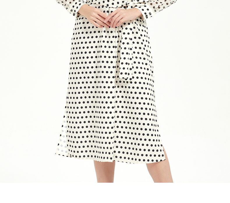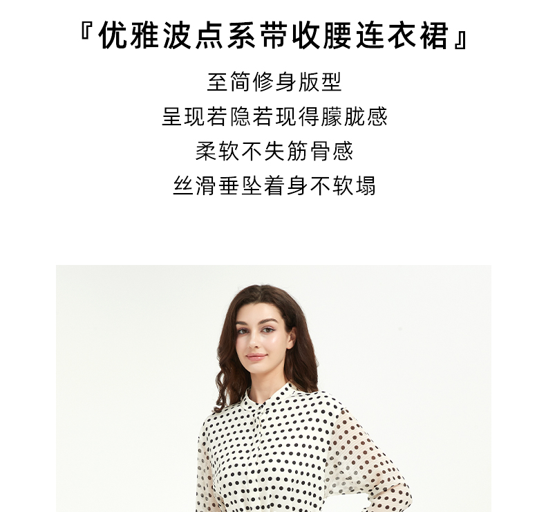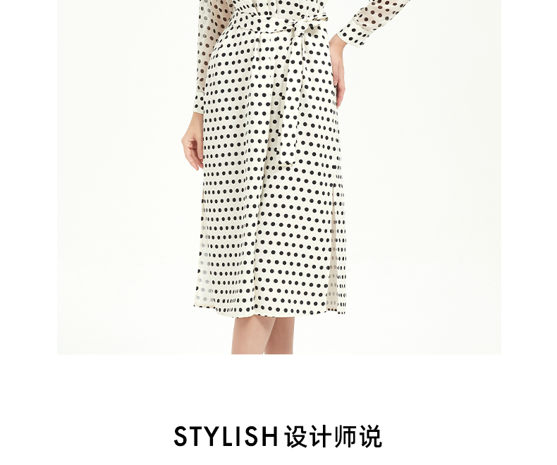 皮尔卡丹女装修身高级感波点系带连衣裙