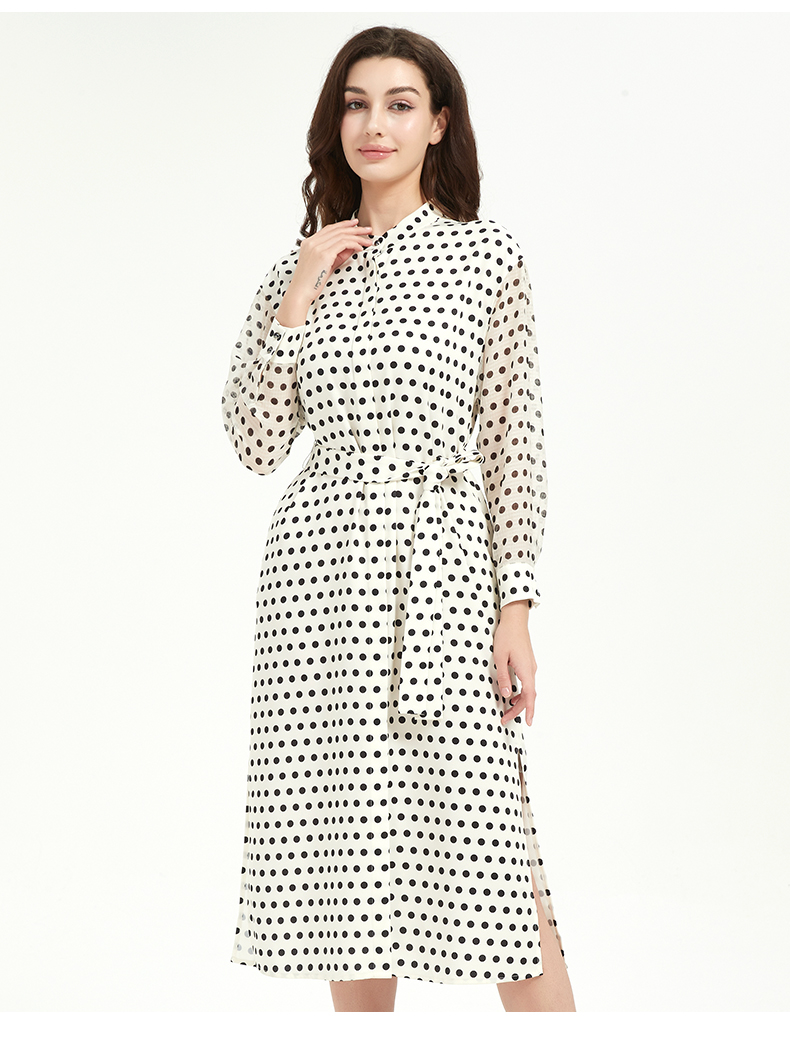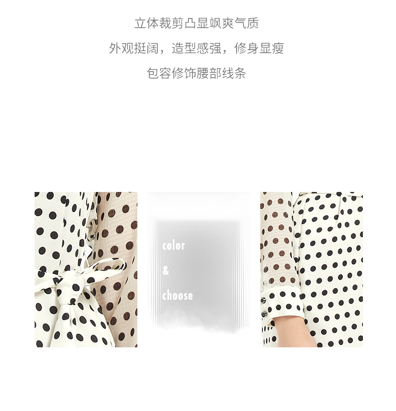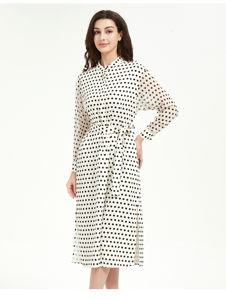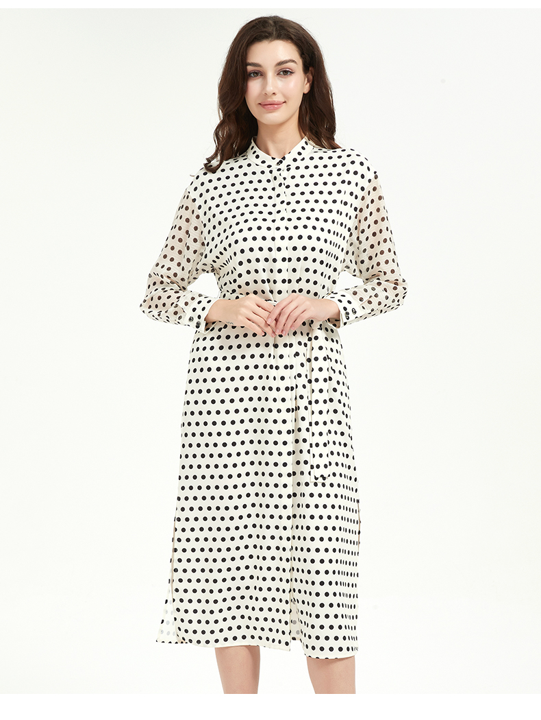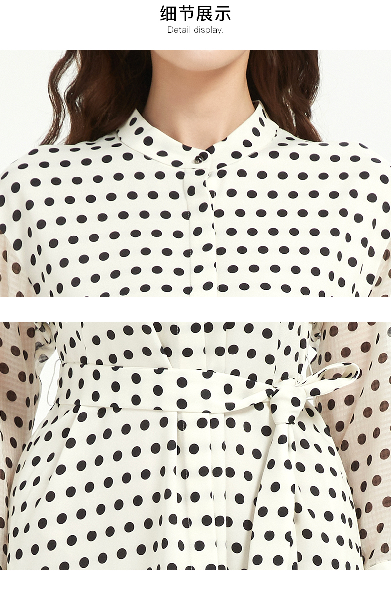 皮尔卡丹女装修身高级感波点系带连衣裙