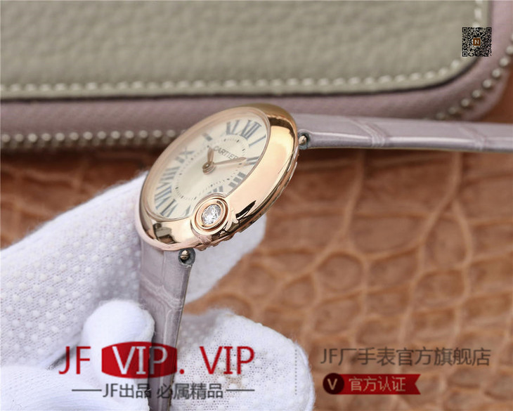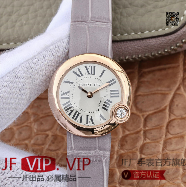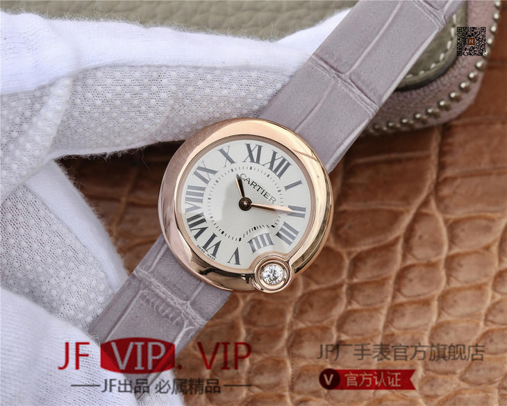 卡地亚BALLON BLANC DE CARTIER系列腕表。这款女士珠宝腕表的最大亮点在于表壳4时位置点缀一颗光华璀璨的钻石