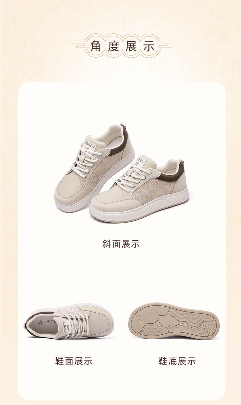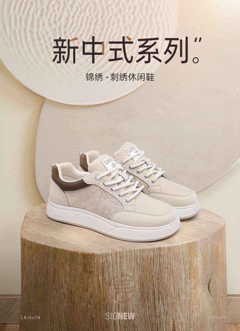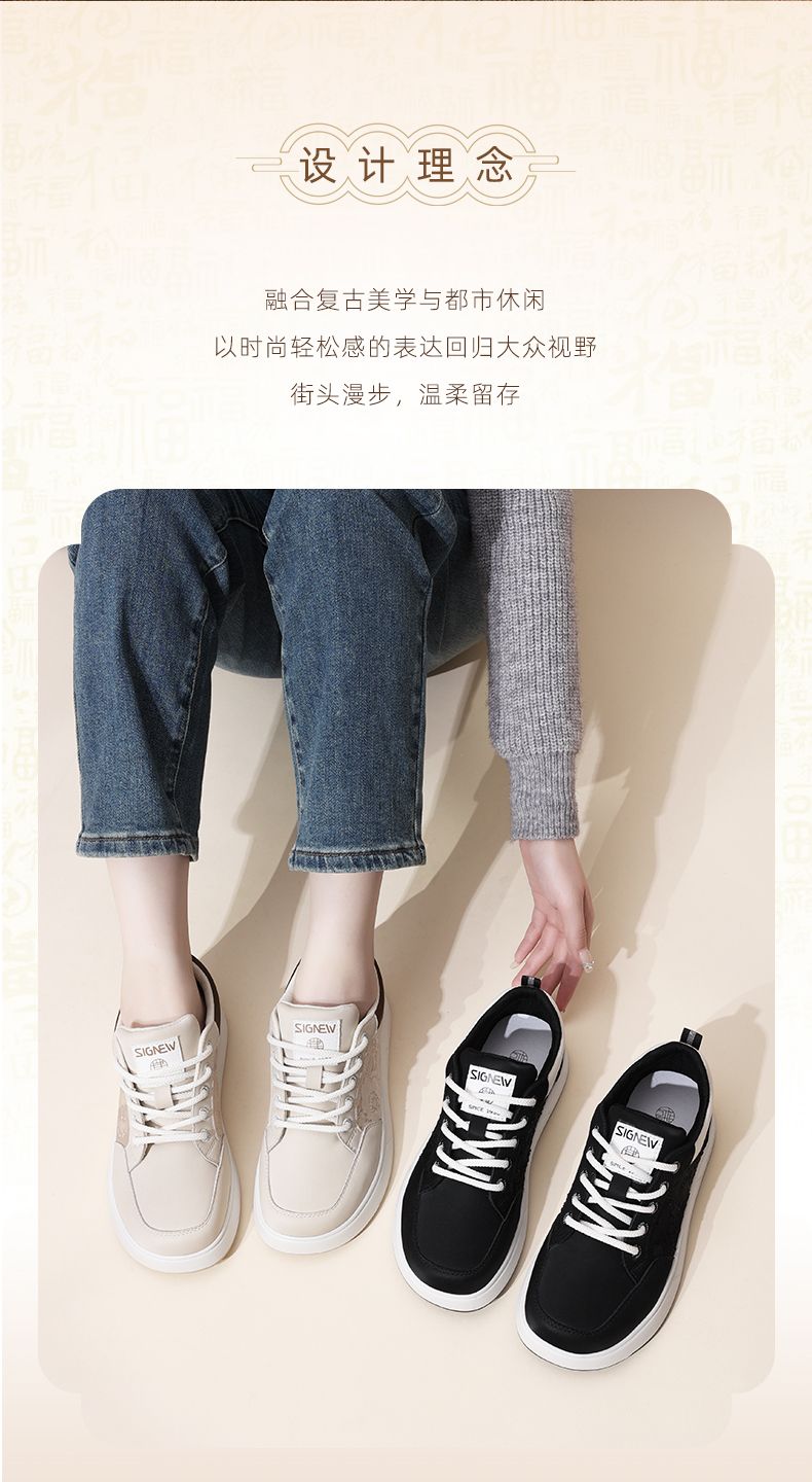 信诺2024新款秋季软底复古休闲板鞋女新中式舒适女士透气妈妈鞋子Q5207-1