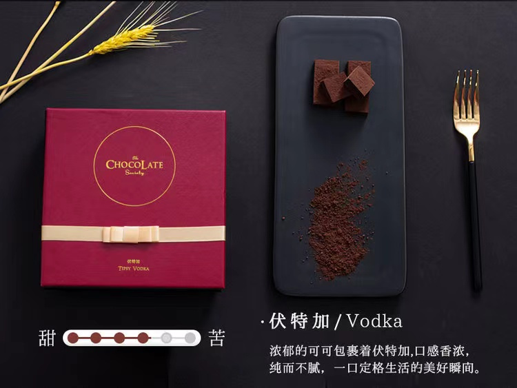 3⃣️盒装含糖-伏特加味 伏特加的味的话,是在生巧里面添加了伏特加的,平时喜欢🍷🍷🍷小酌一杯🍷🍷🍷,或者是🎁🎁送男朋友的,伏特加味是很不错的选择。🈲️🈲️吃了以后可不能开车哦🚗🚗,🈲️🈲️小朋友也不能尝试哦。🙅♂️🙅♂️🙅♂️