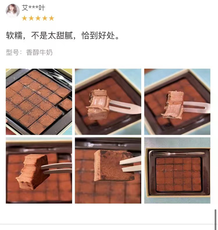 ▼这款巧克力简直就是要封神,更细腻,更纯粹,更新鲜。媲美日本生巧,价格却只有日本生巧的1/3,巧克力脑必冲。
