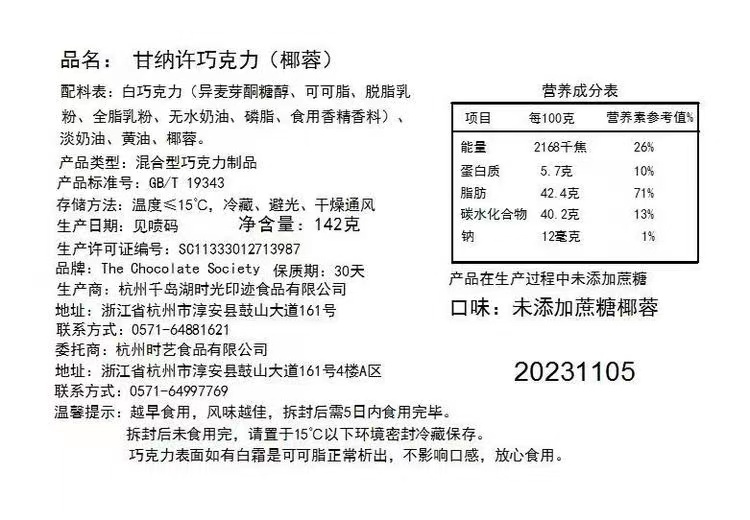 6⃣️未添加蔗糖-椰蓉味 🥥🌴🌴🥥椰蓉味是目前唯一的用白巧做的一款生巧,🌴🌴椰蓉的颗粒配上入口即化的巧克力🍫。颗粒与柔滑的碰撞,椰香与巧克力的融合,给您带去不一样的口味体验。🌝🌝想想都要流口水了😋😋😋ps。⚠️⚠️⚠️椰蓉的会更比牛奶更甜一点哦⚠️⚠️