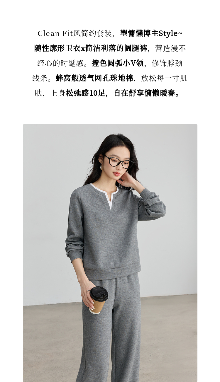 【1件75折】熙世界一整套早春穿搭卫衣套装女2025新款运动风休闲直筒裤两件套