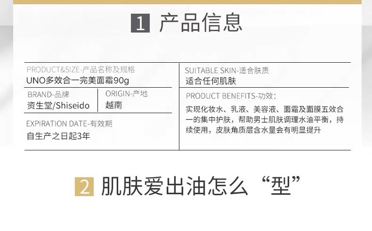1、产品名称:资生堂UNO/吾诺多效合一完美面霜