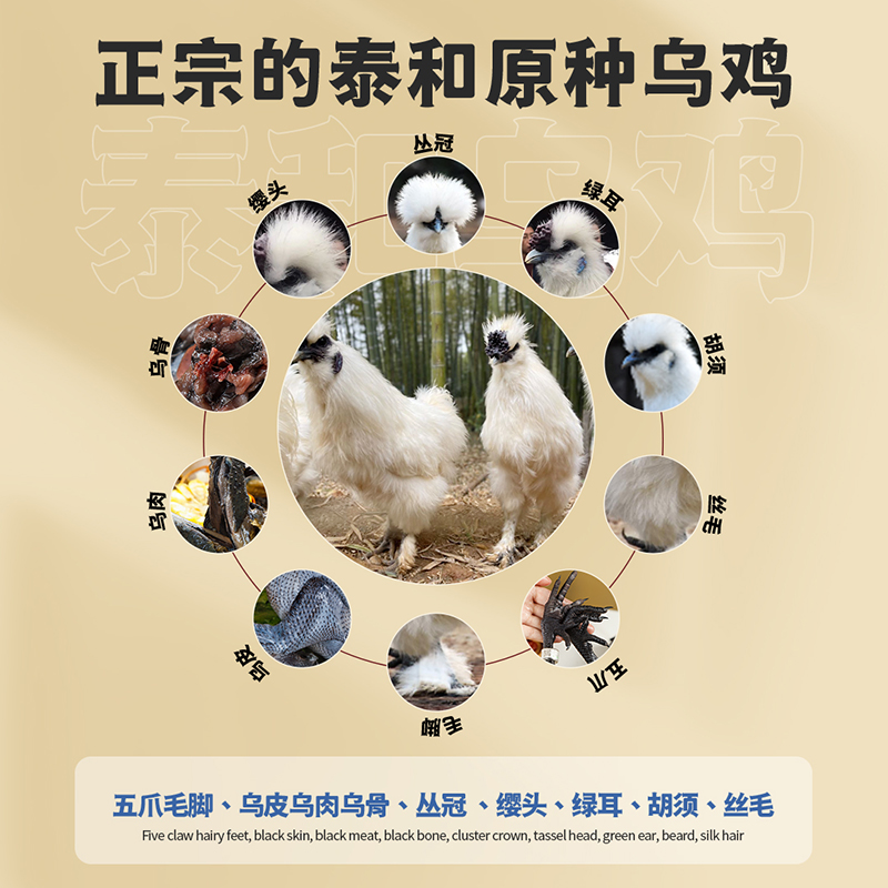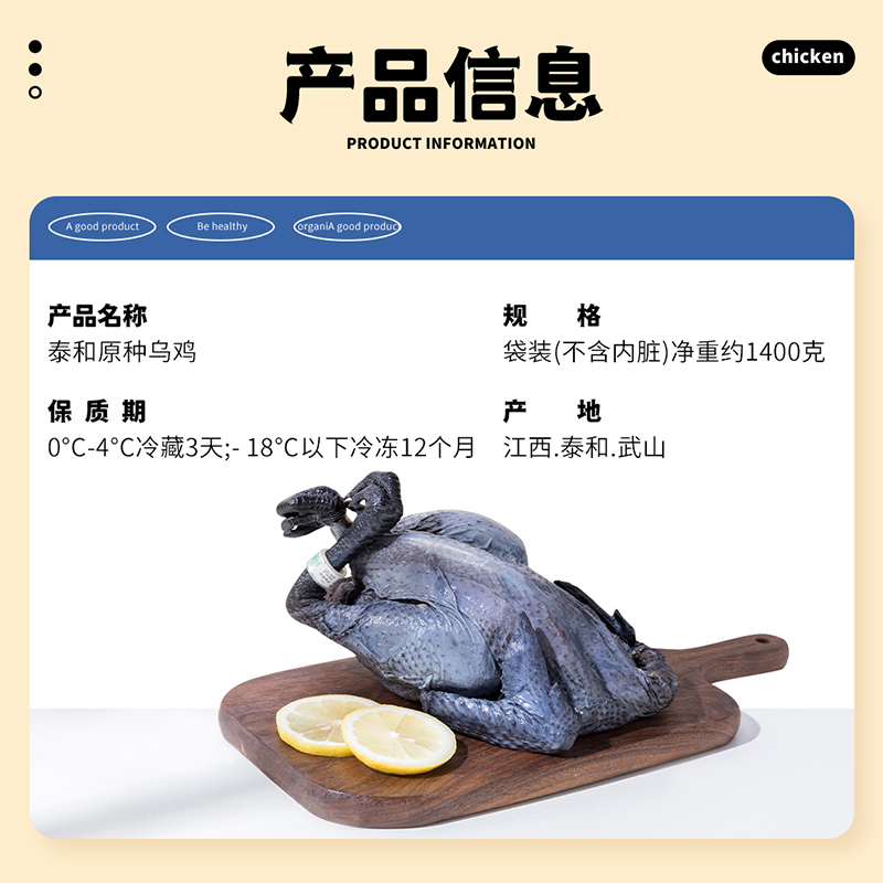 【内物包含】泰和原种乌鸡整鸡一只(不含内脏)