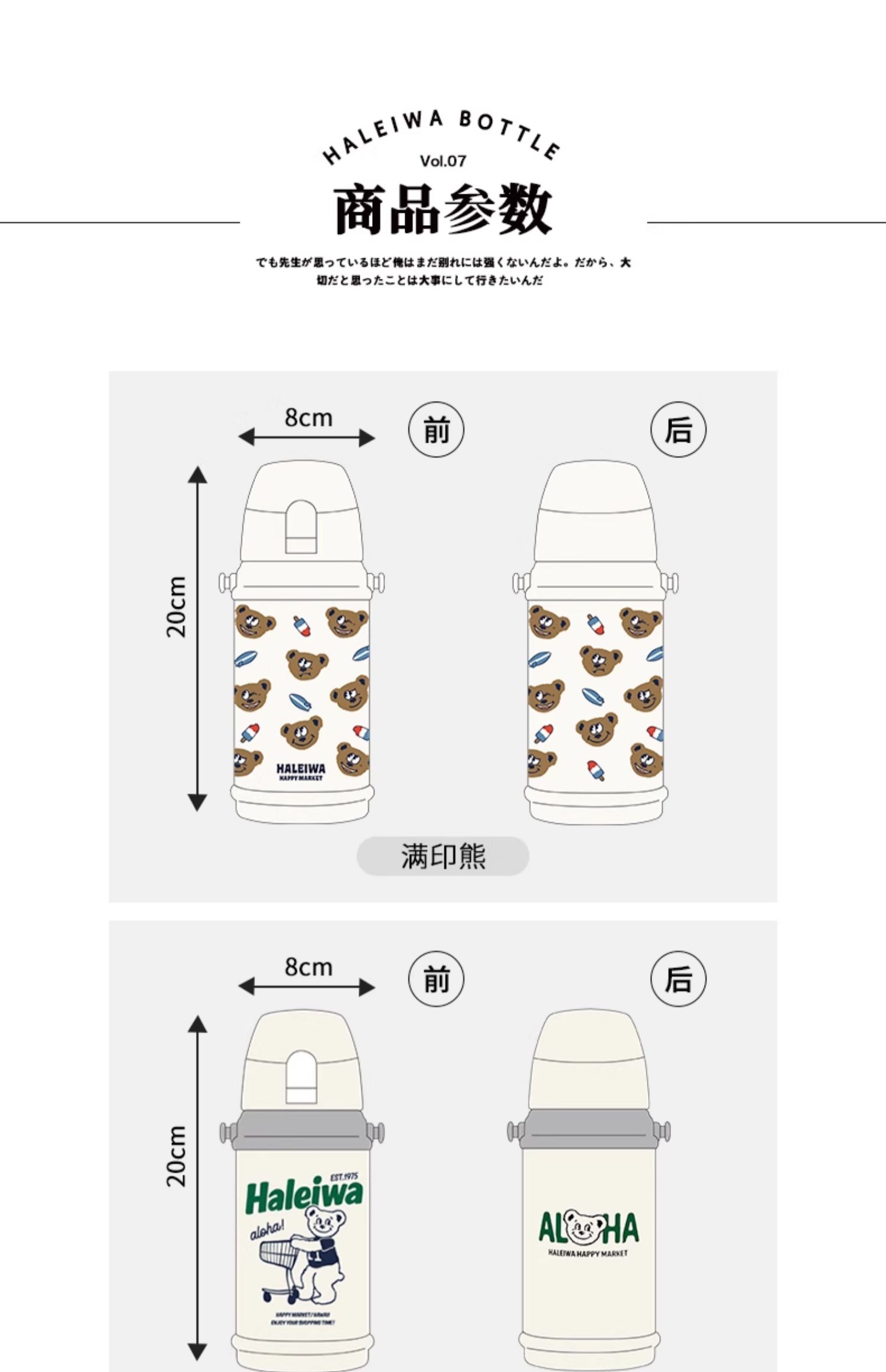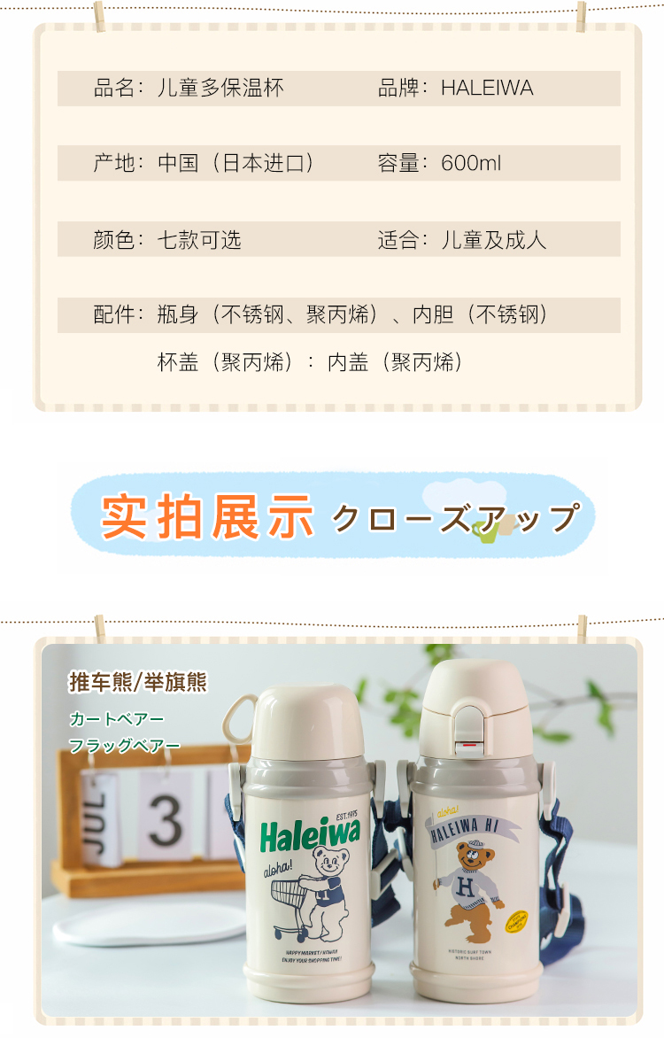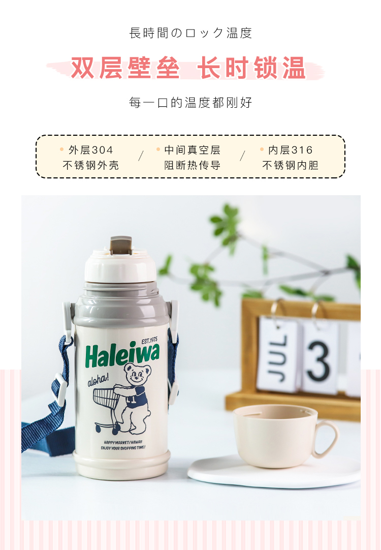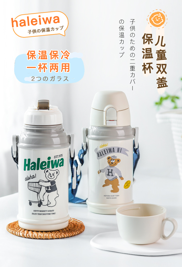 Haleiwa儿童保温杯316不锈钢大容量一杯两用直饮保温杯