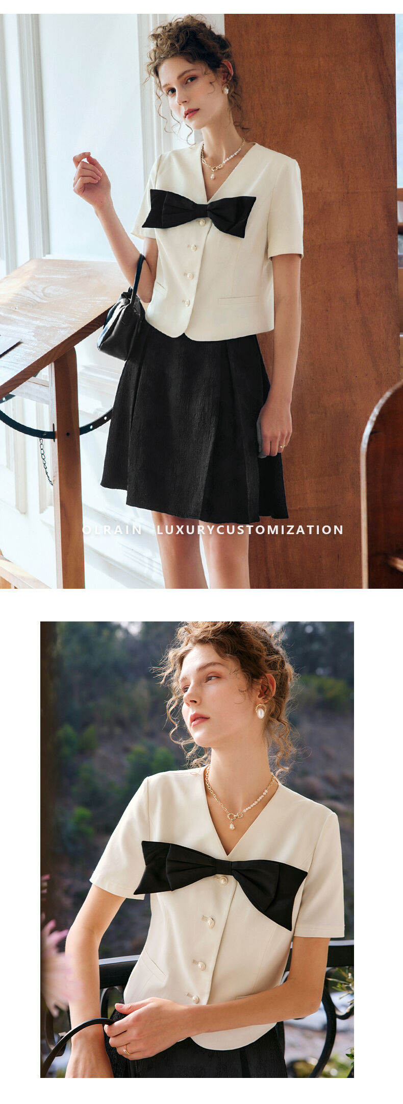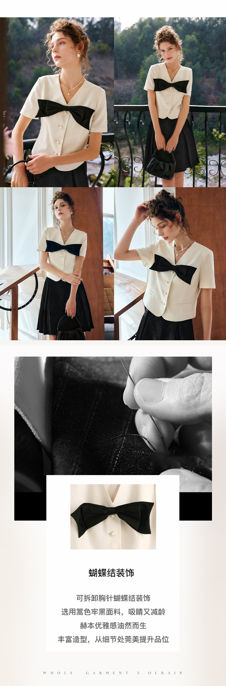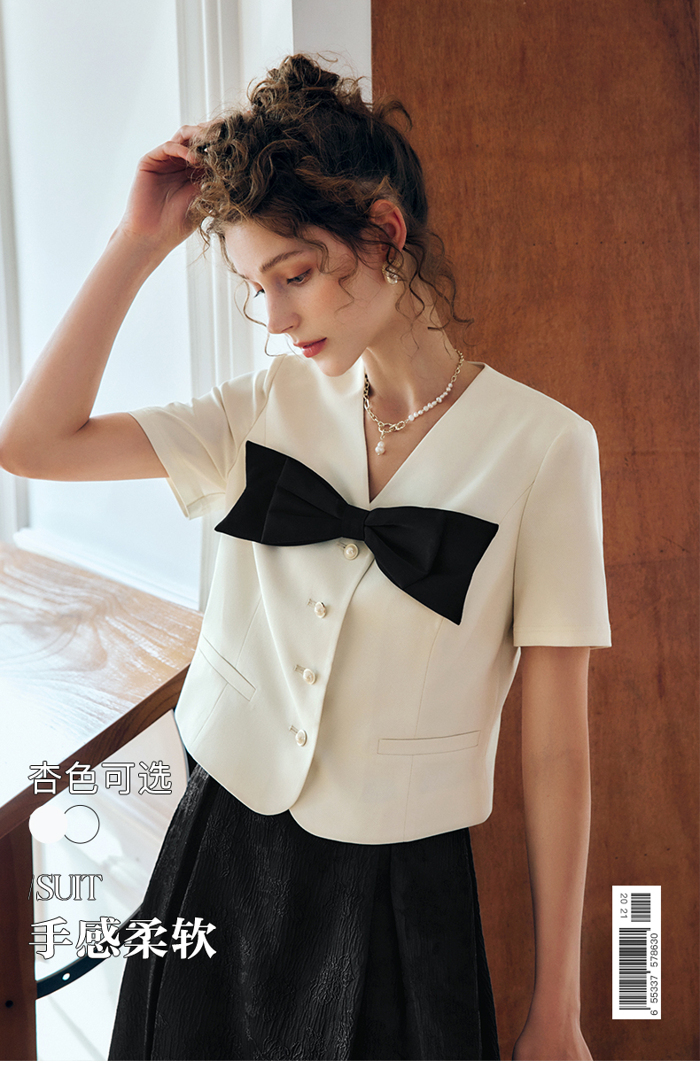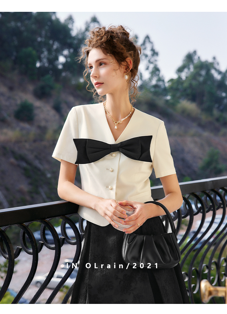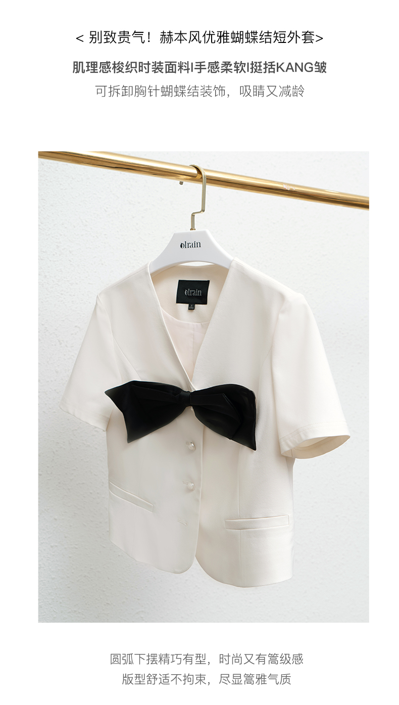 OLrain法式高级穿搭赫本风短外套女夏季2022新款V领设计感上衣