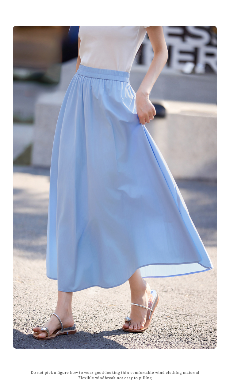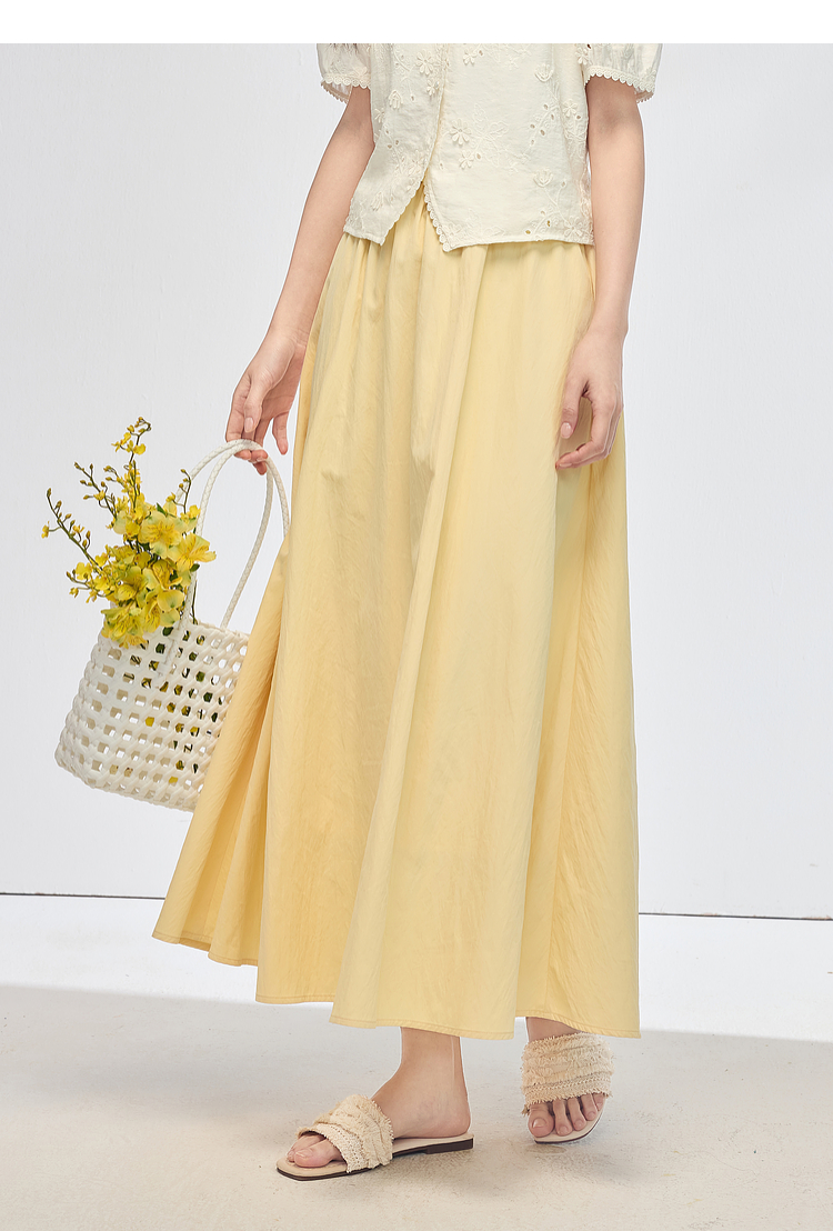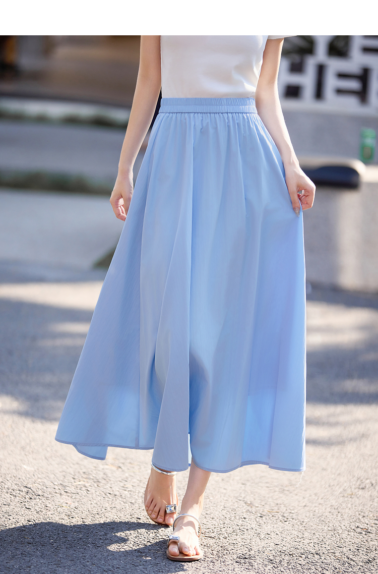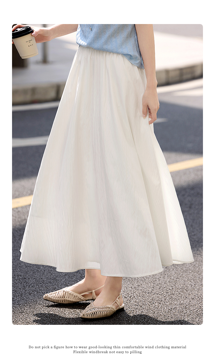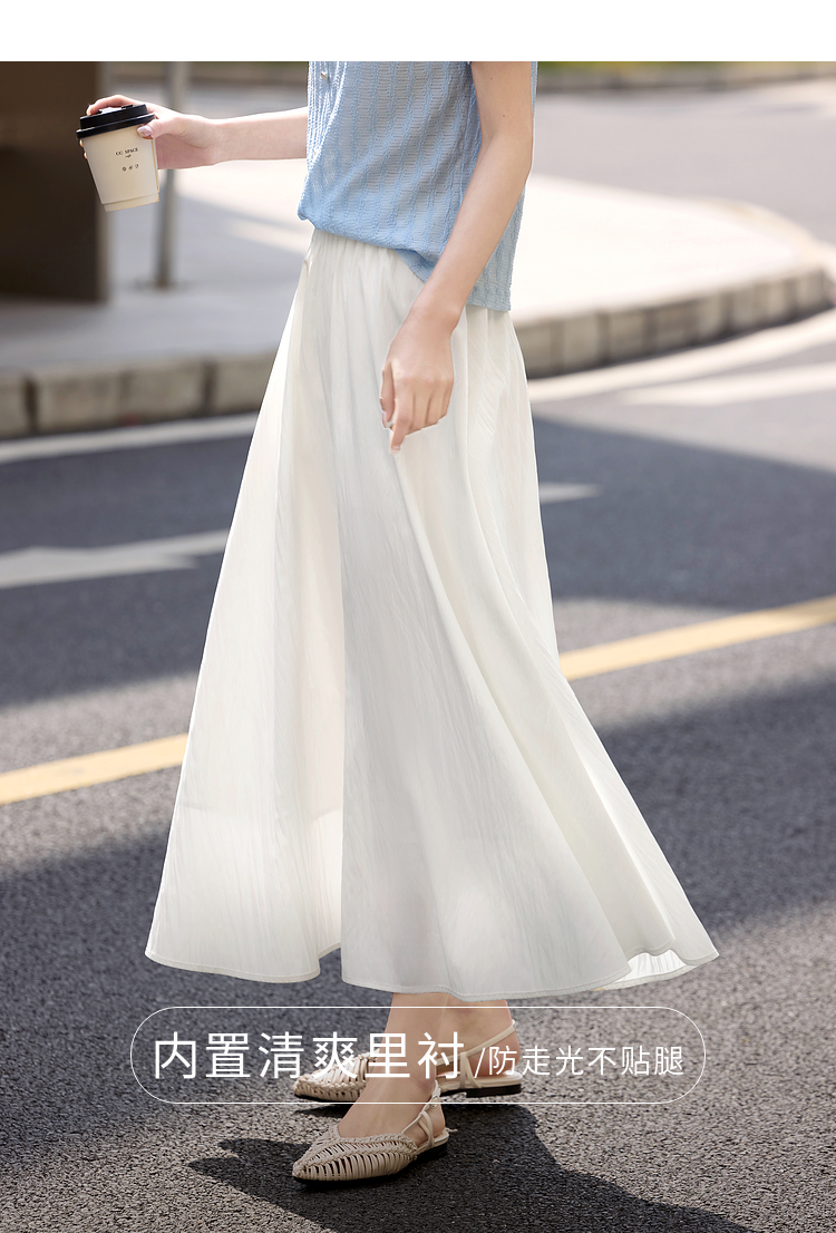 【夏日新品】熙世界空气感飘逸白色半身裙女2025夏季新款松紧高腰中长a字伞裙