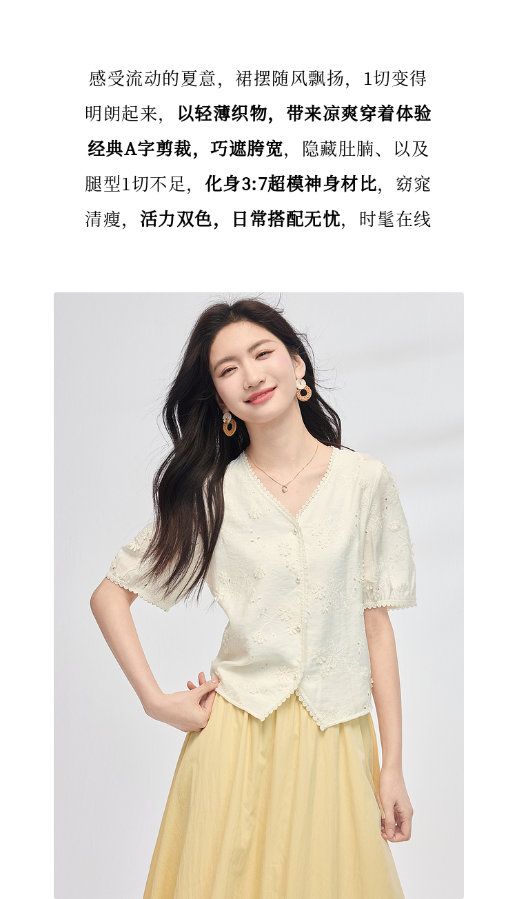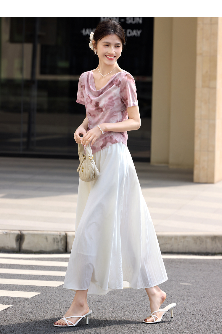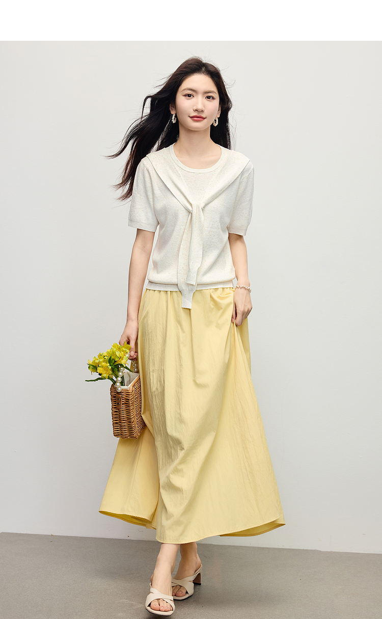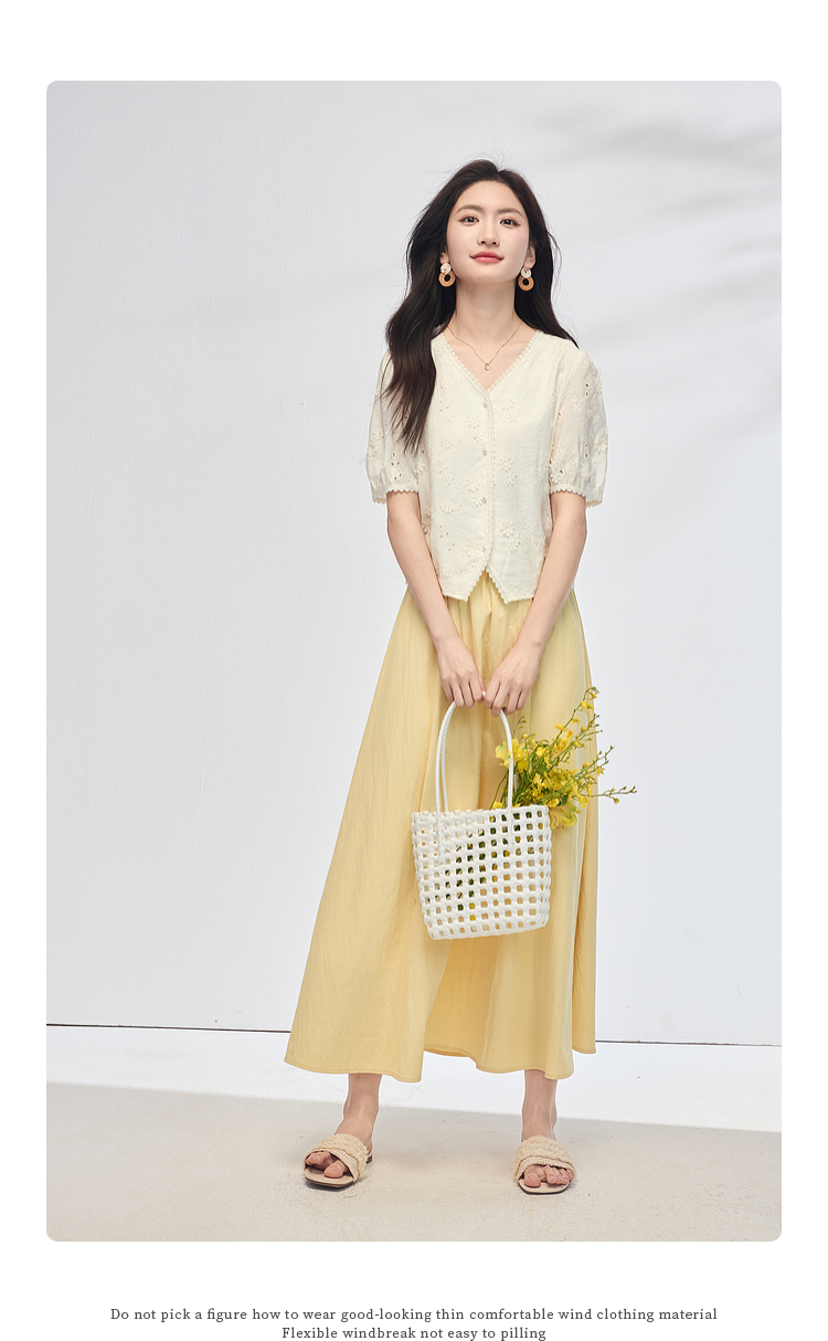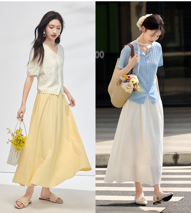 【夏日新品】熙世界空气感飘逸白色半身裙女2025夏季新款松紧高腰中长a字伞裙