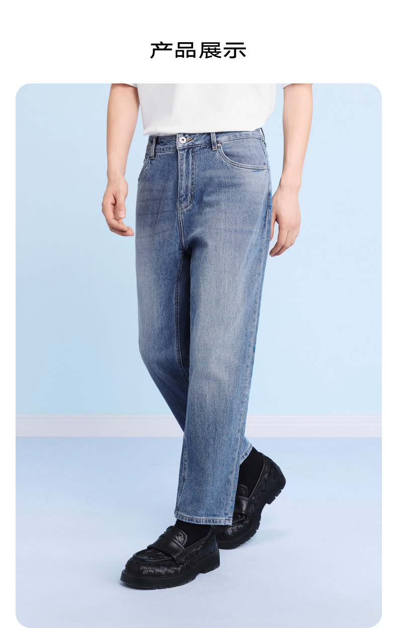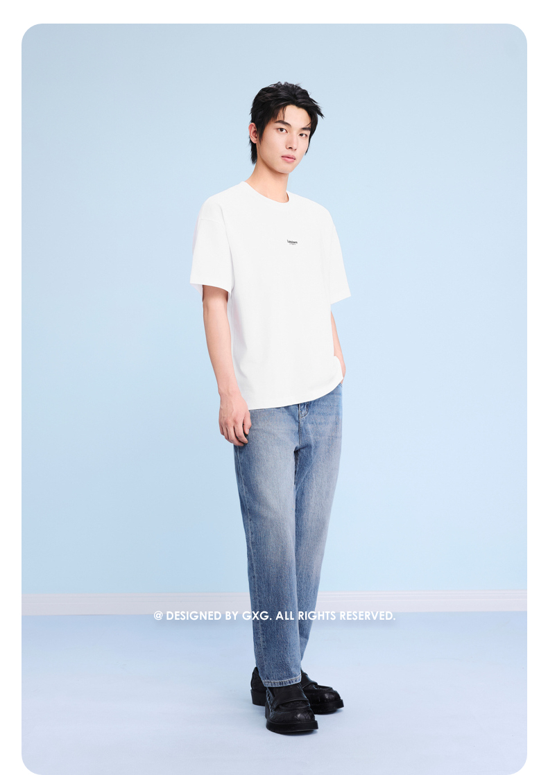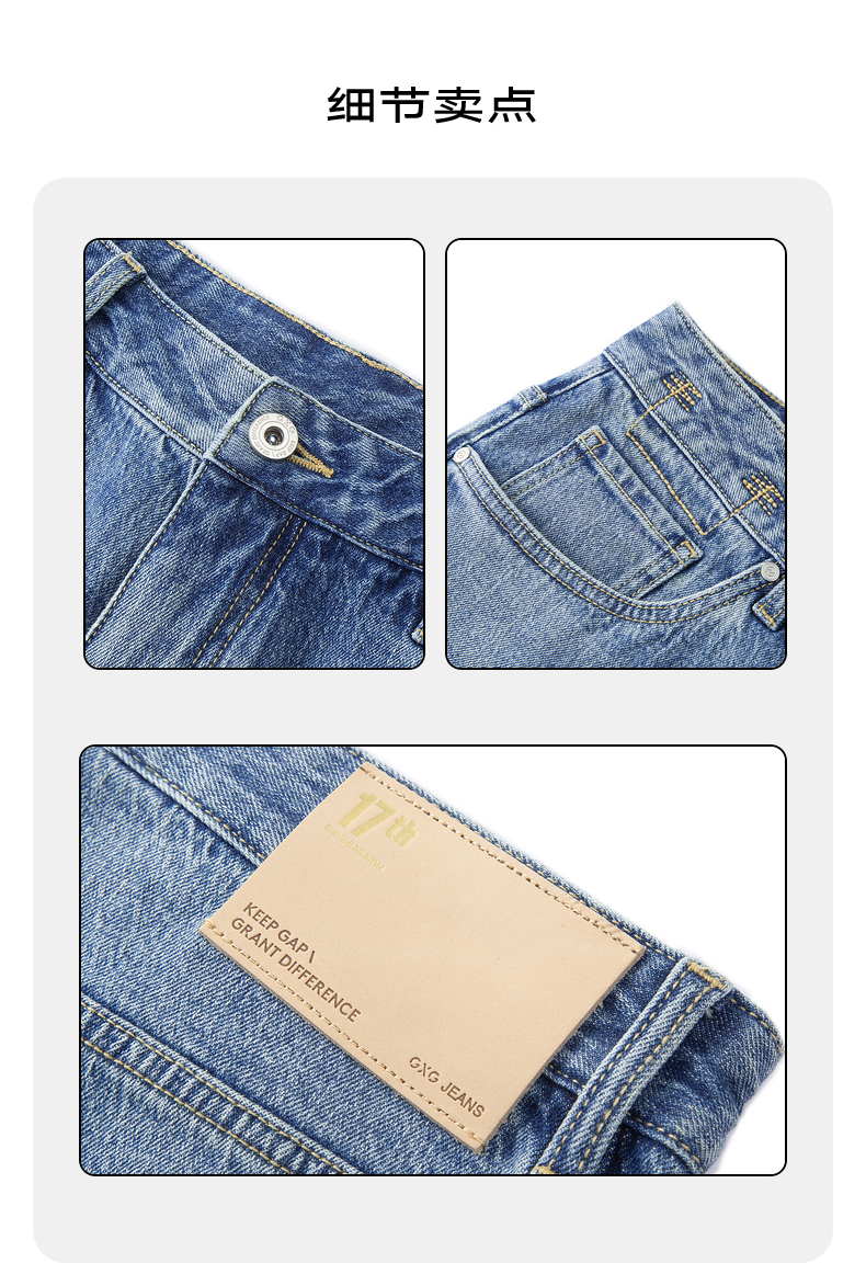 GXG男装 牛仔蓝经典锥形长裤百搭裤子 24年夏G24X052009