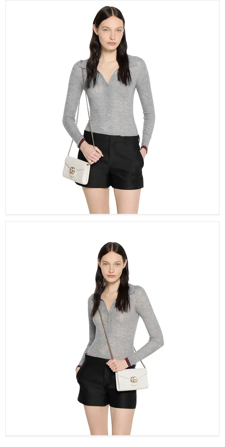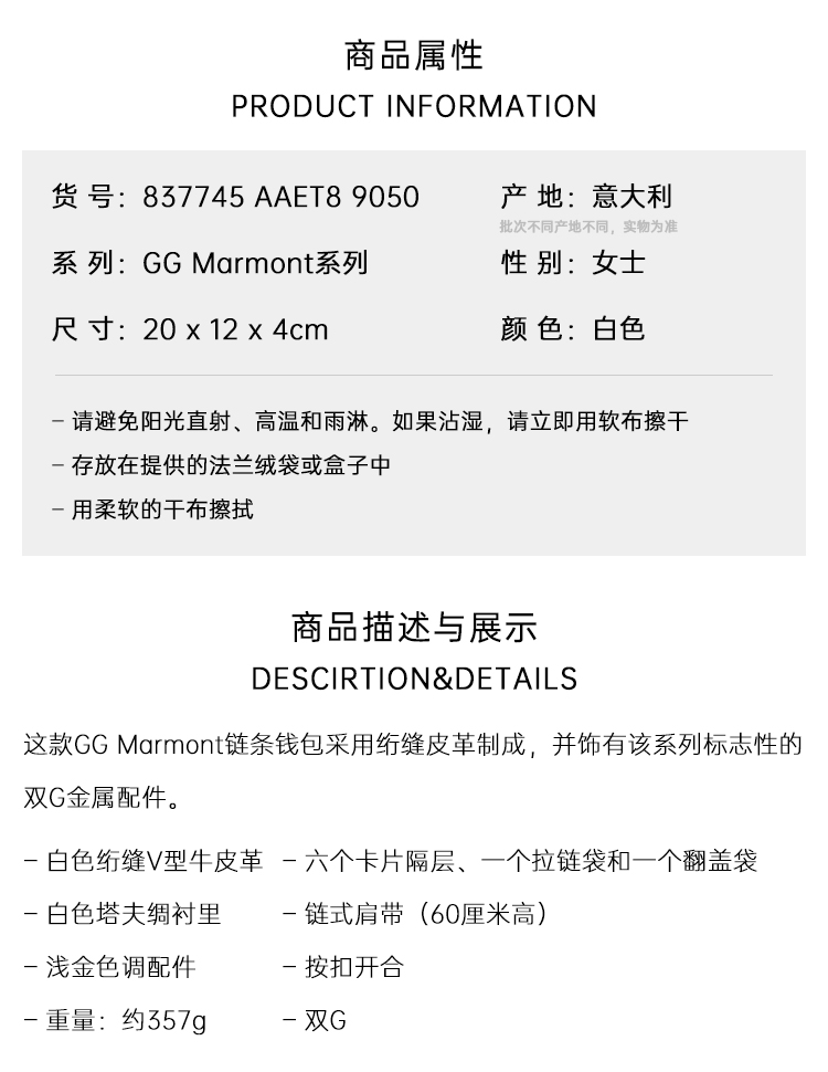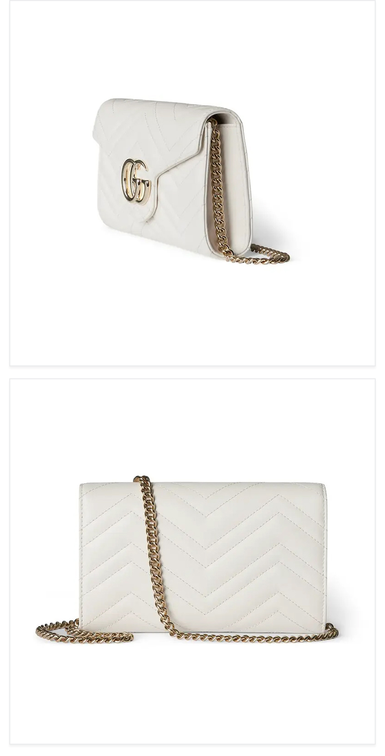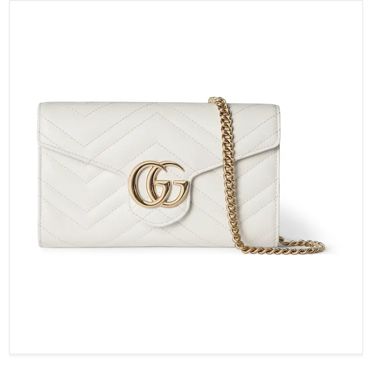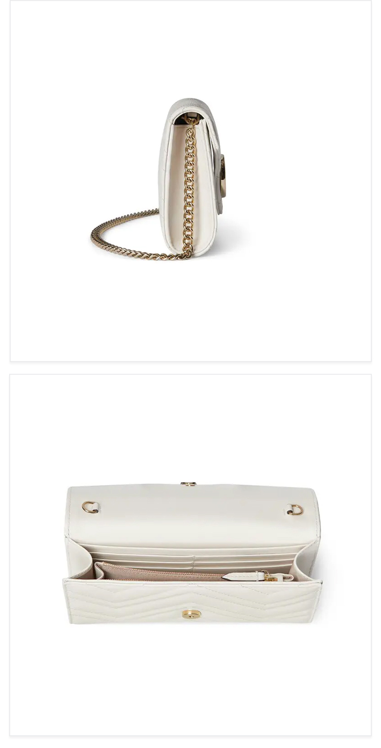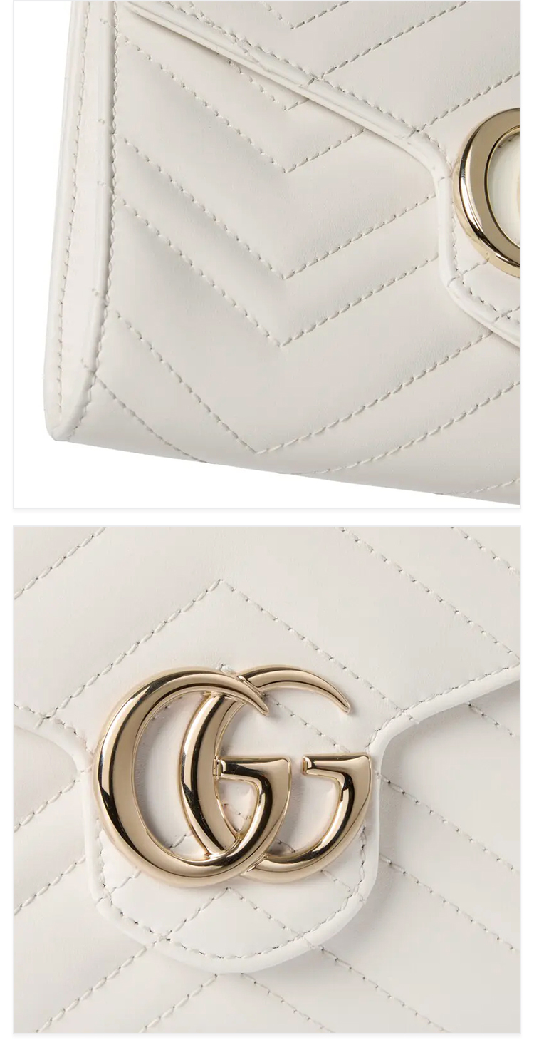 GUCCI 古驰 女士绗缝V型牛皮革 GG Marmont系列 链式单肩包 白色 837745 AAET8 9050