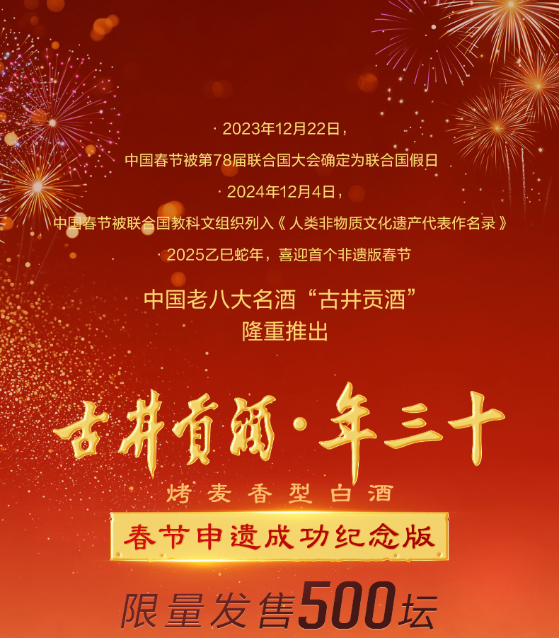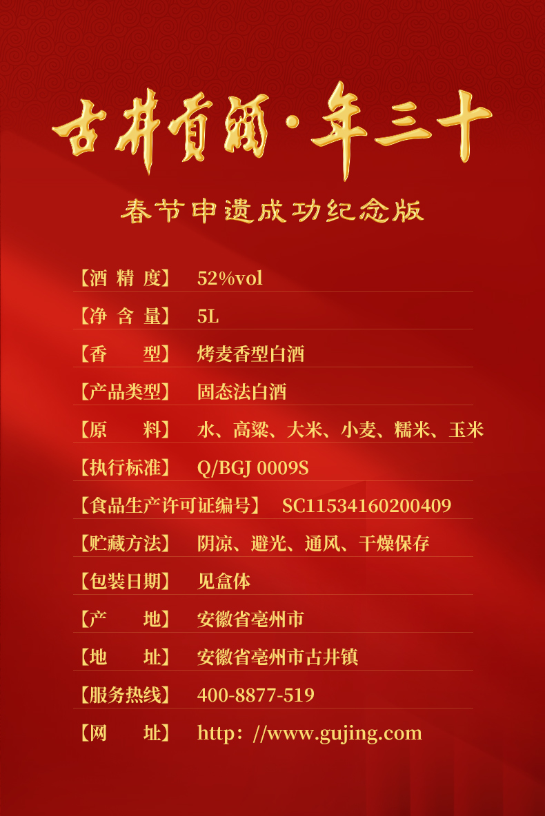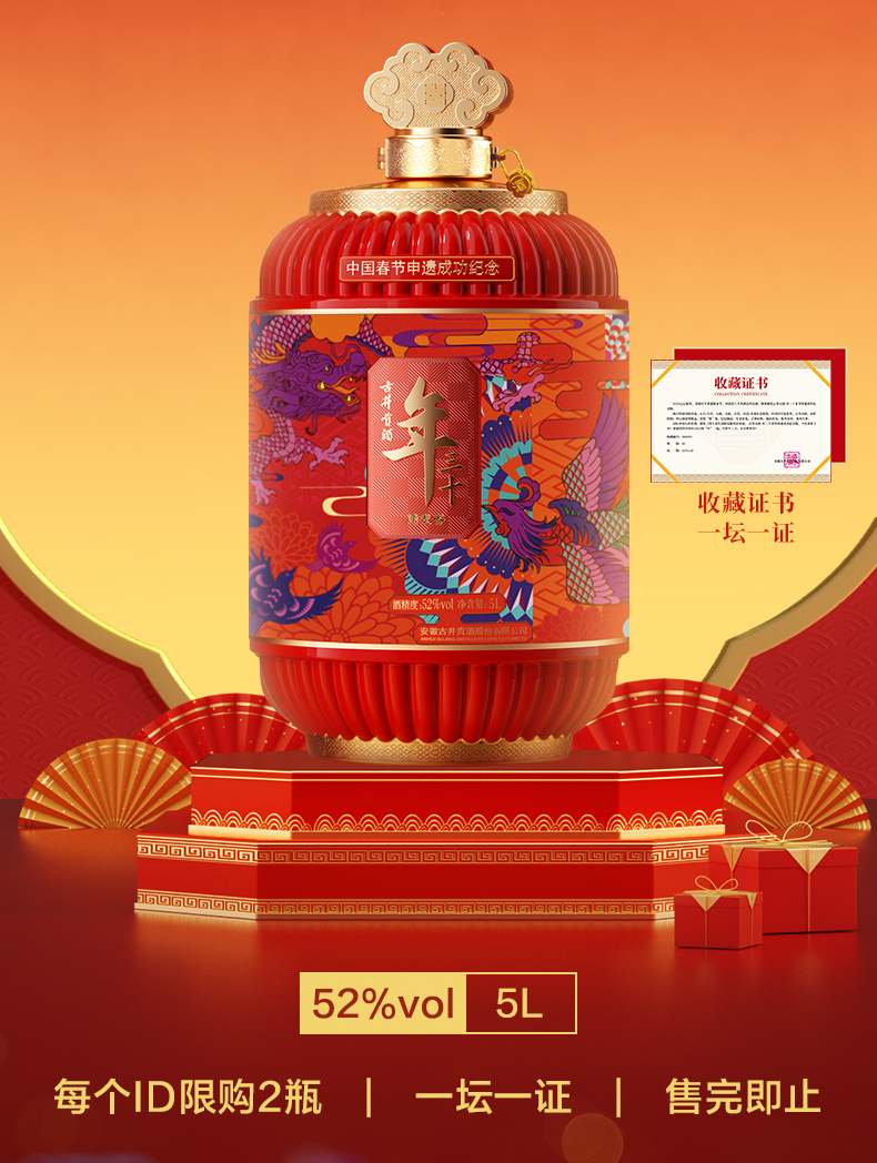 古井贡酒年三十春节申遗成功纪念版 52度5L大坛酒