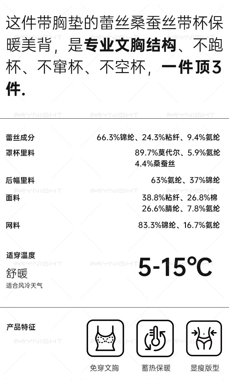 美奈川 蕾丝桑蚕丝带杯 保暖美背 DD5654 商品图6