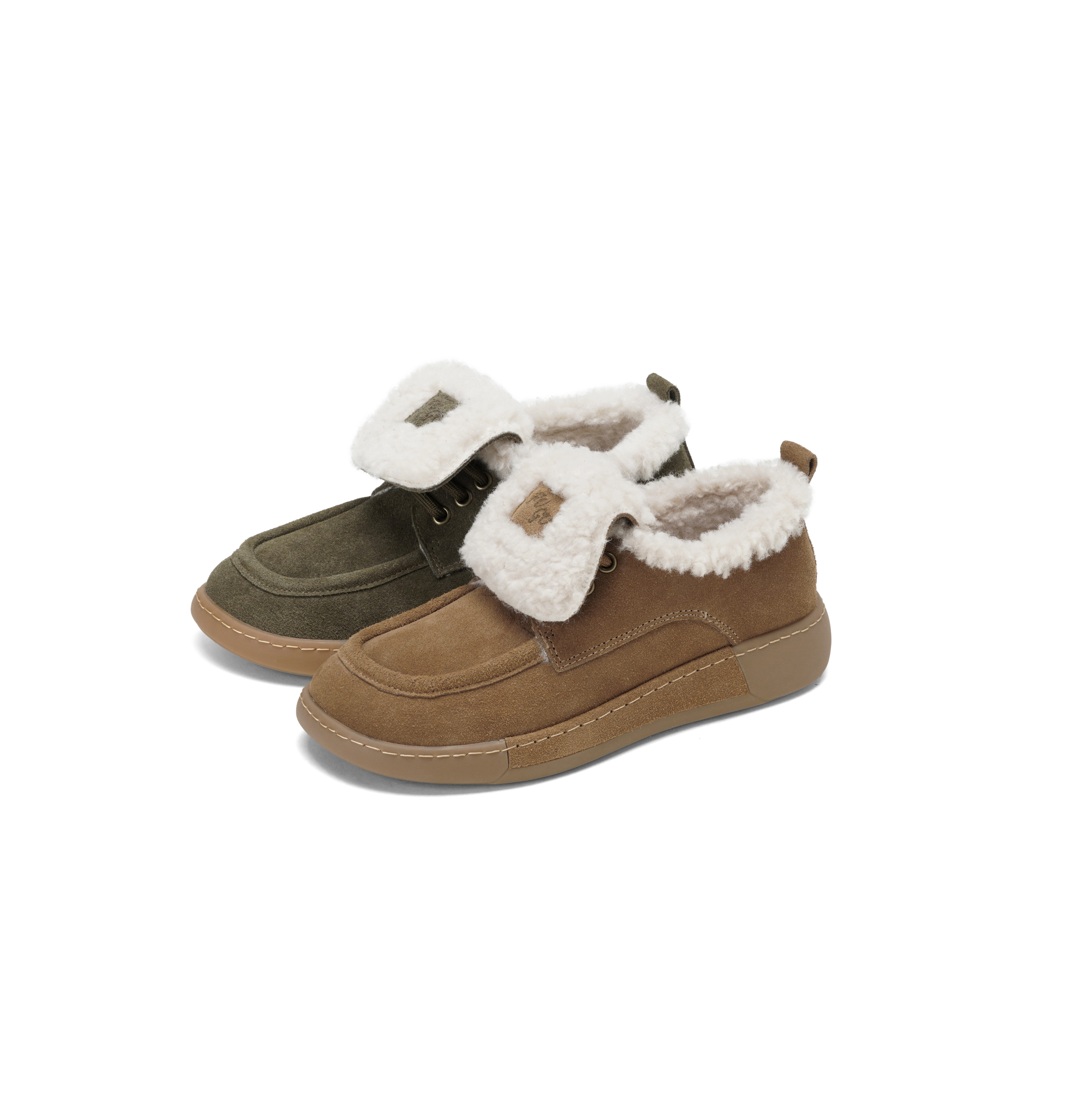 西村名物2025年冬季新款磨砂皮加绒保暖雪地靴平底防滑毛毛鞋X25DM49031
