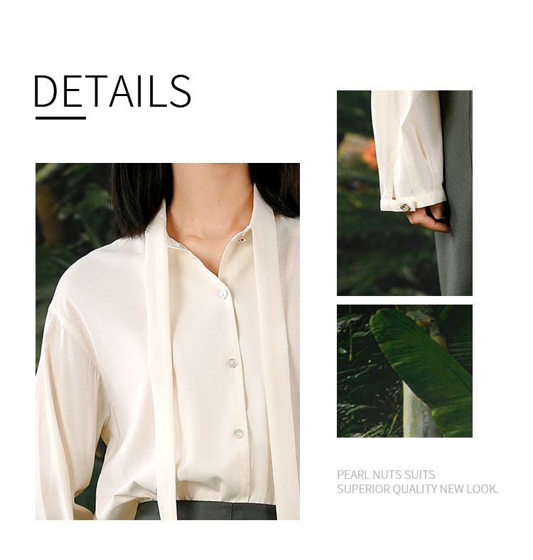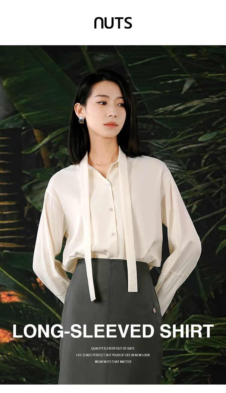 NUTS春秋季新款法式通勤气质飘带宽松显瘦长袖衬衫女413011398