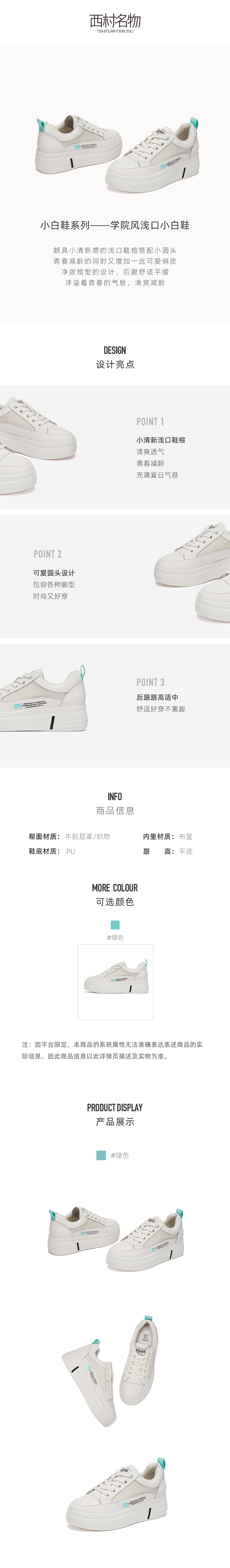 西村名物2020秋季新款小白鞋女厚底系带休闲时尚学院风板鞋T20CM31781