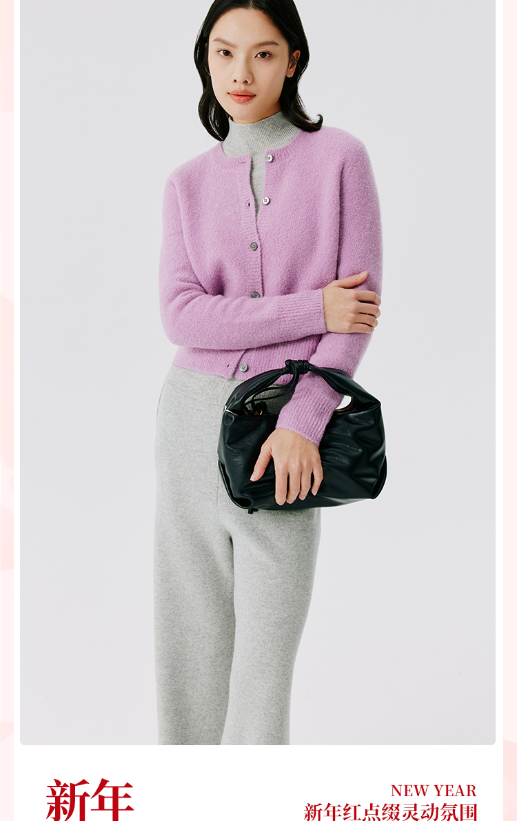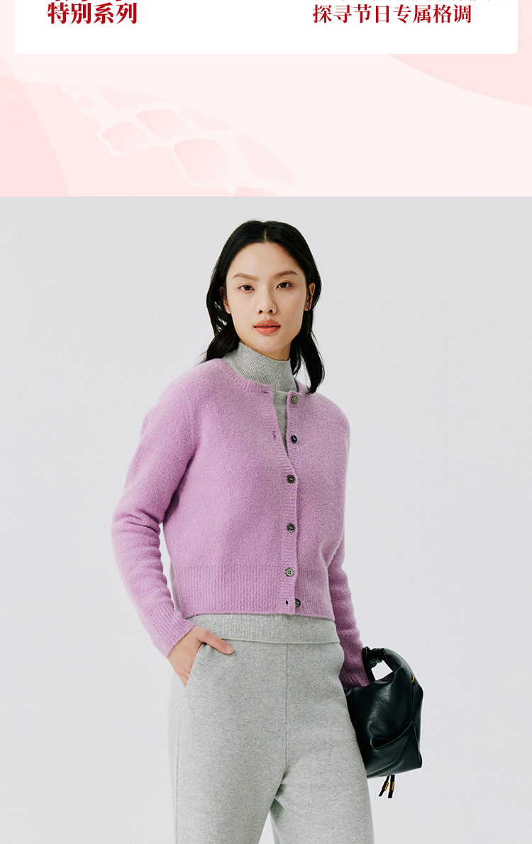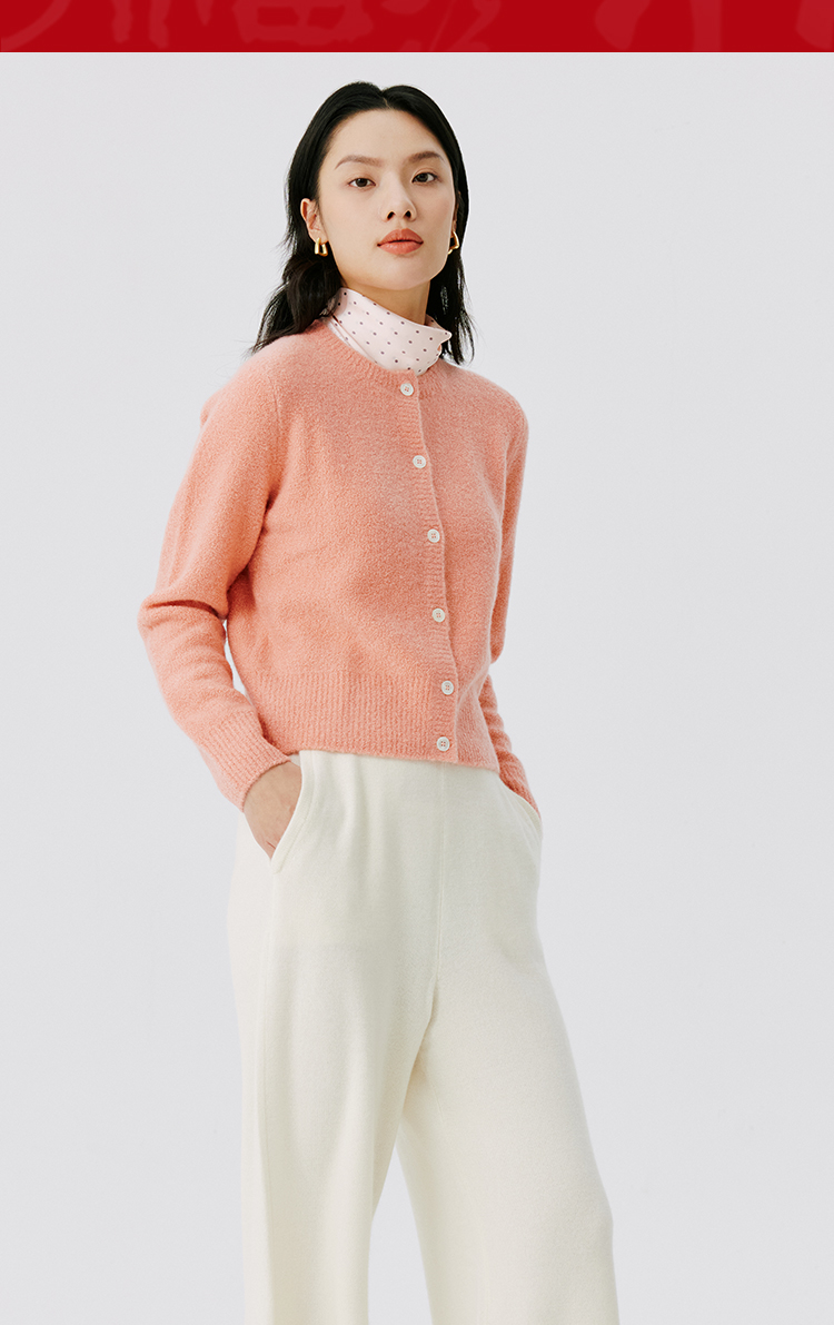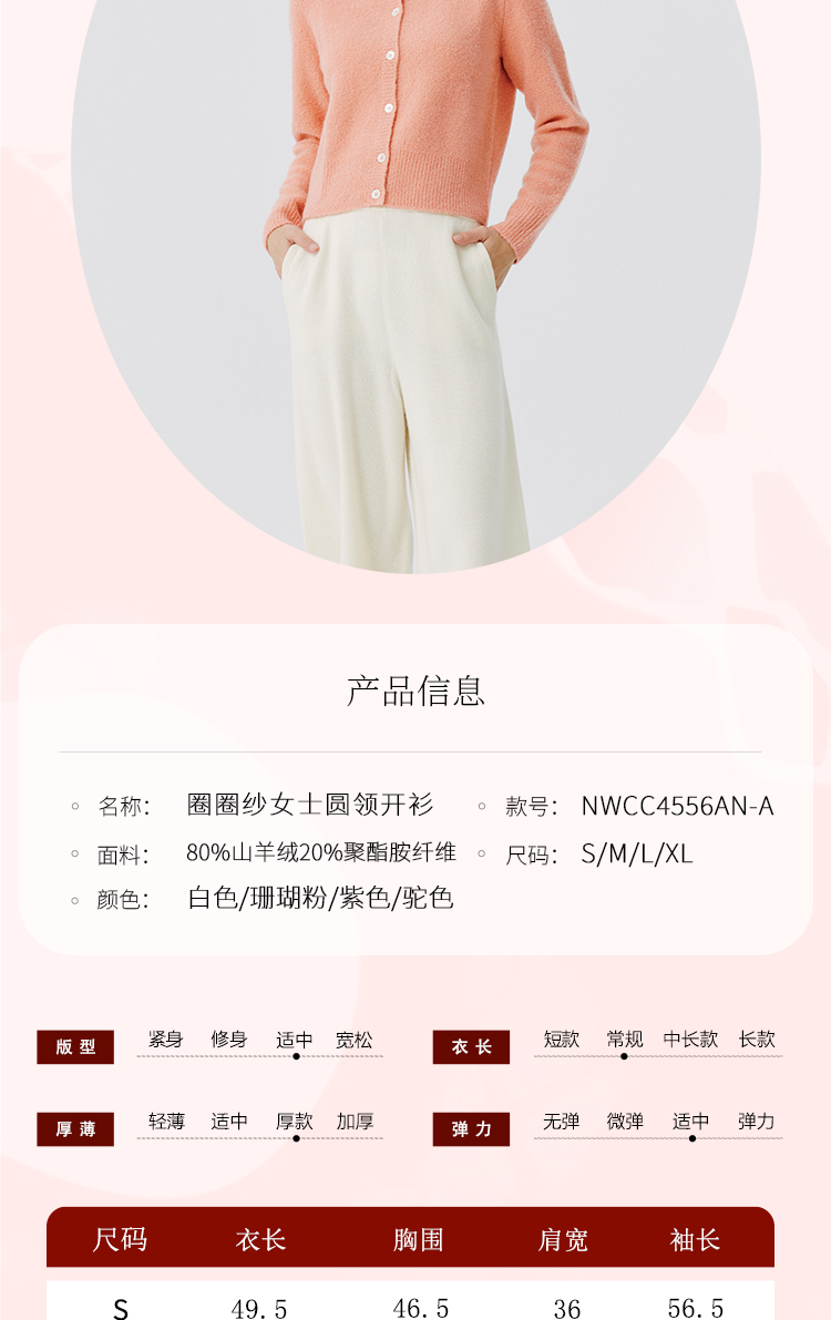 东黎 •山羊绒女士秋冬圈圈纱圆领开衫 4556