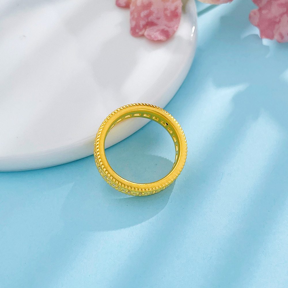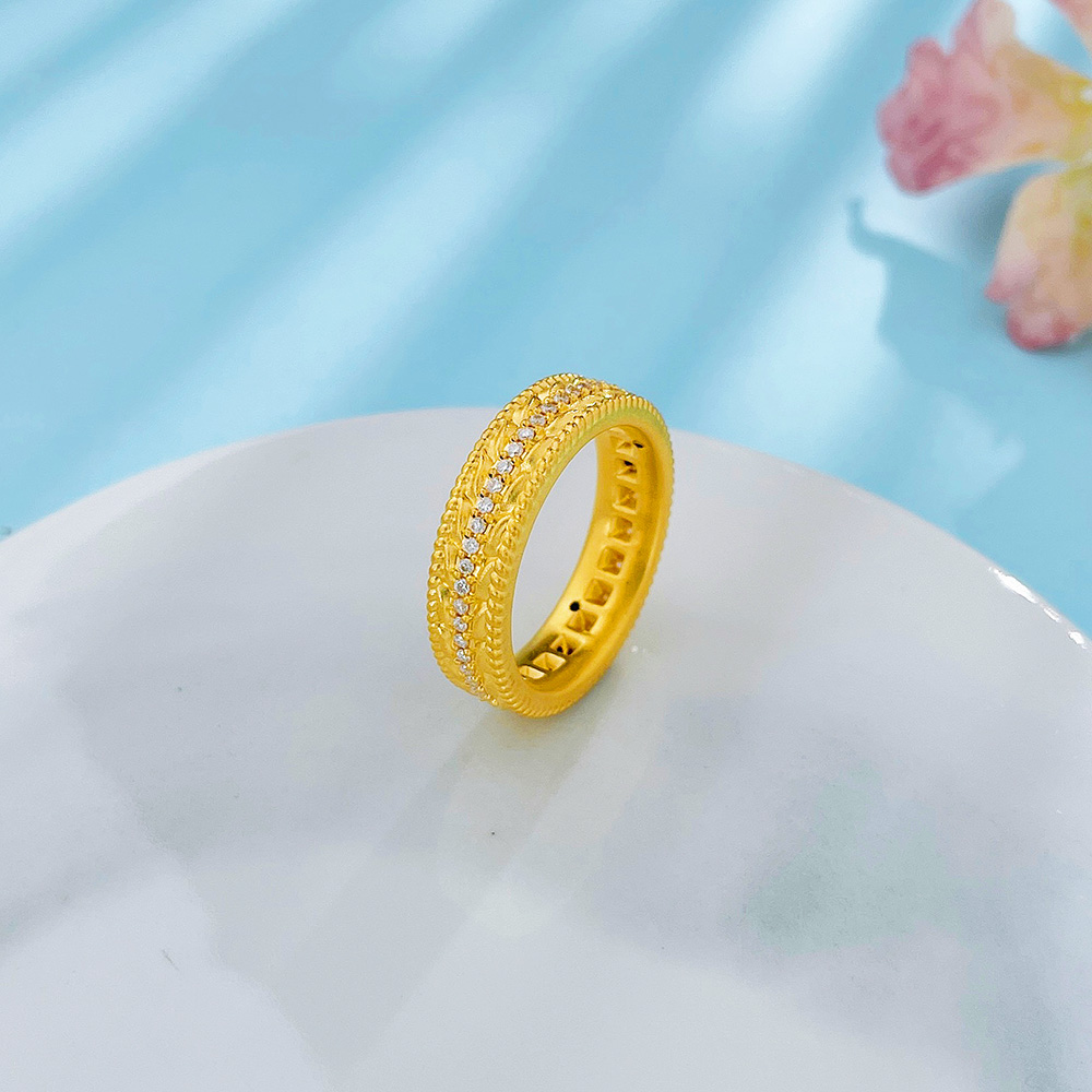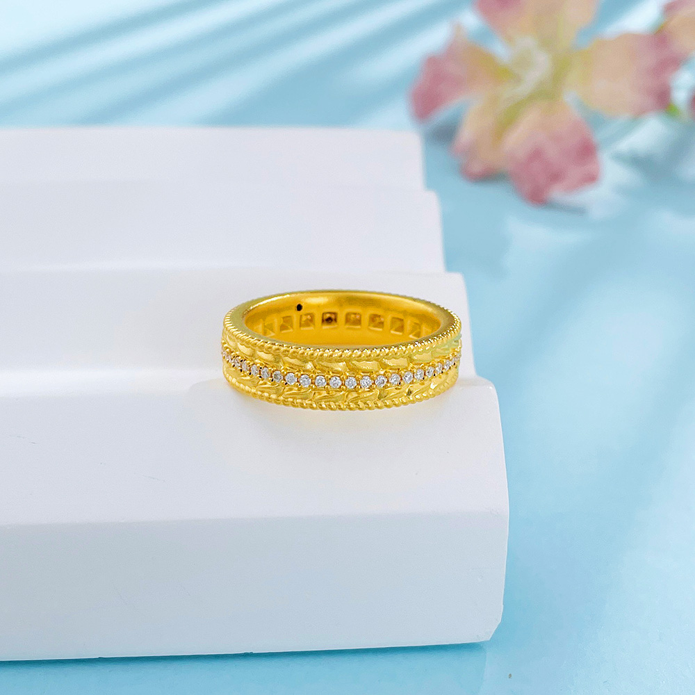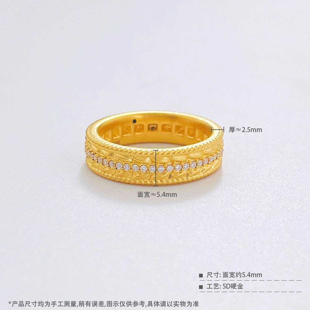 【限时克减150元】足金 #复古风 #莫桑石 无氰5D镶嵌空心岁岁平安古风编织纹麦穗圈戒(面宽约5.2-5.6mm)(BH5DJZ00157)预售产品下单后不退款不退货不换货不补差价